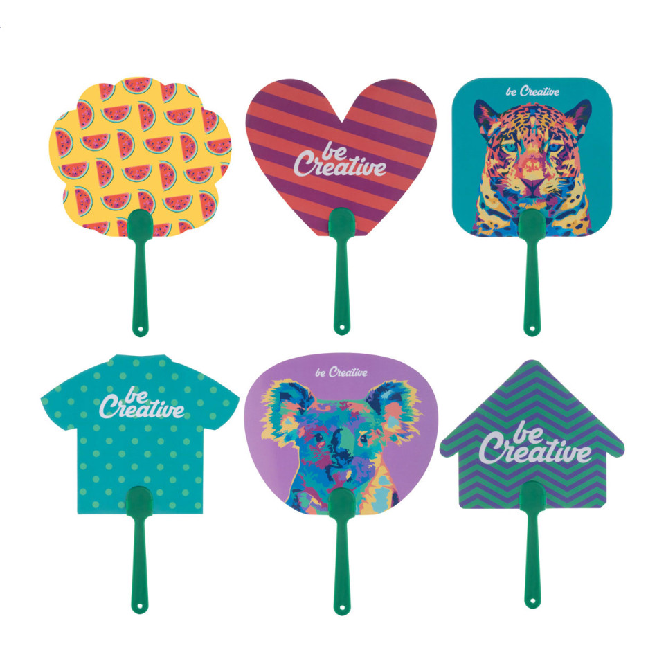 L’impression numérique est réalisée sur les deux faces de l’éventail, pour maximiser la visibilité.
