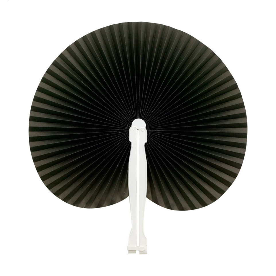 Éventail noir en plastique robuste, adapté pour offrir une ventilation manuelle agréable lors de fortes chaleurs, aussi bien en extérieur qu’en intérieur. Léger et facile à transporter, il se glisse aisément dans un sac ou une poche.