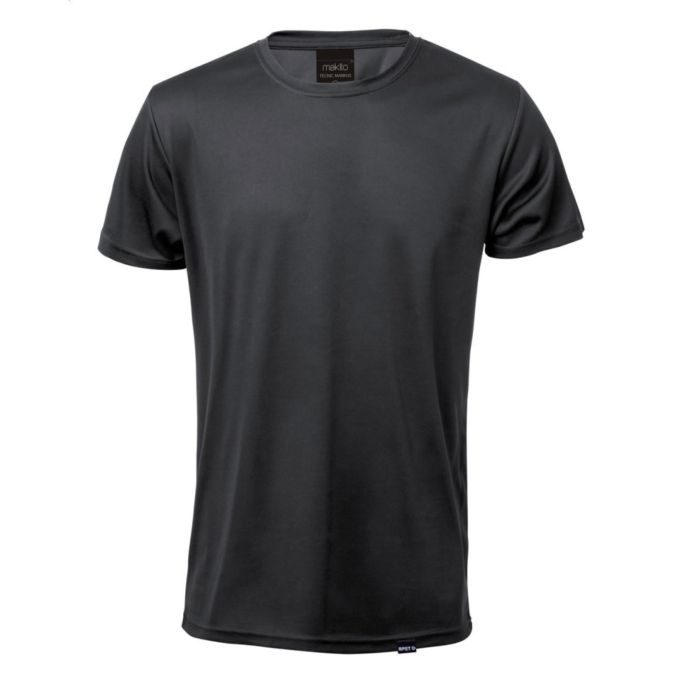 T-shirt de sport noir, conçu en 100% polyester RPET respirant, idéal pour l’entraînement, les loisirs actifs ou les événements sportifs. Coupe unisexe, légère et confortable, adaptée à une utilisation intensive en intérieur comme en extérieur.