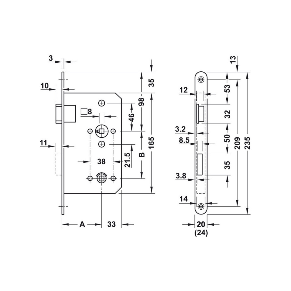 De mechanische bediening activeert de dagschoot via de klink en de nachtschoot via het WC-slot, waardoor het slot zowel overdag als ’s nachts functioneel beveiligd is. De installatie vereist afstemming op een rechts push-deur volgens DIN-norm. p >