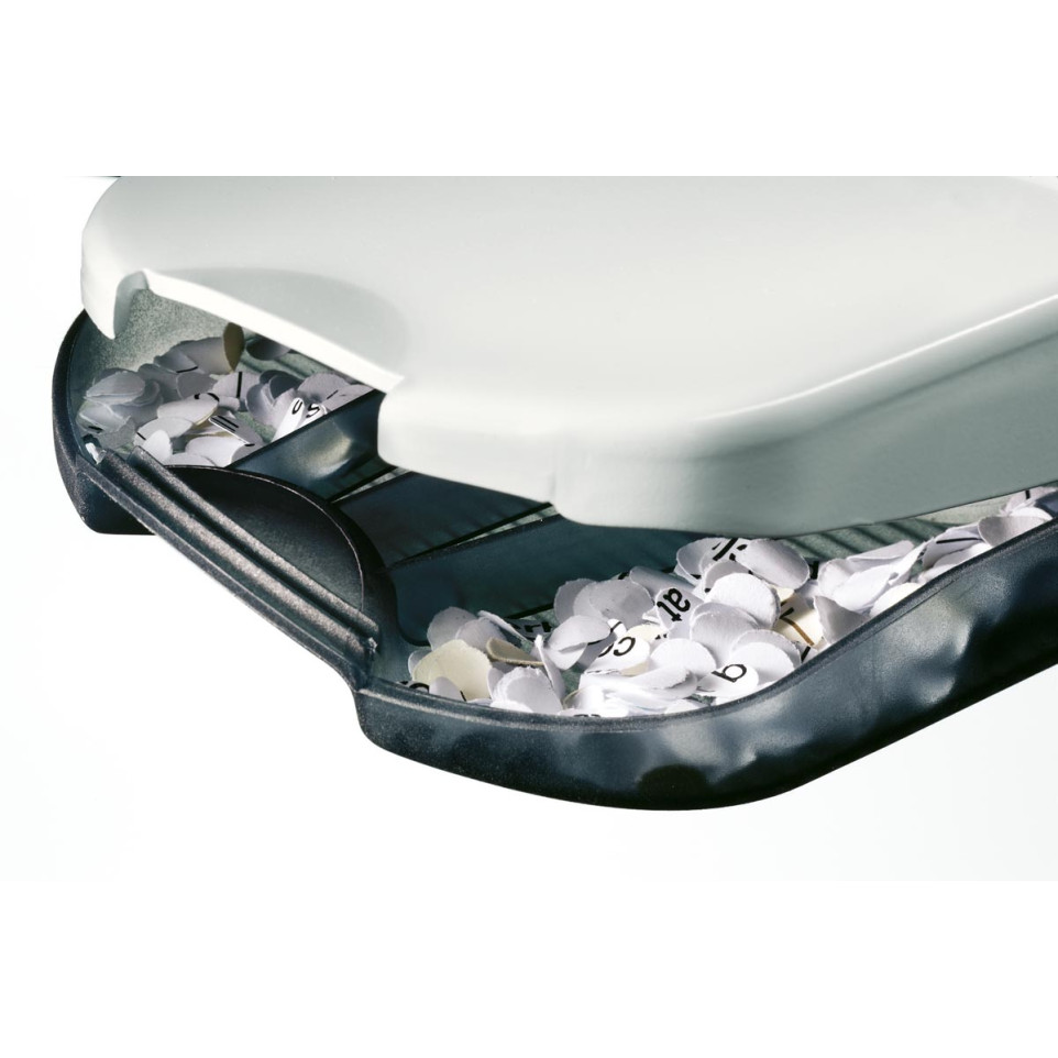 De Leitz 5138 heeft een scharnierend opvangbakje dat eenvoudig geleegd kan worden.