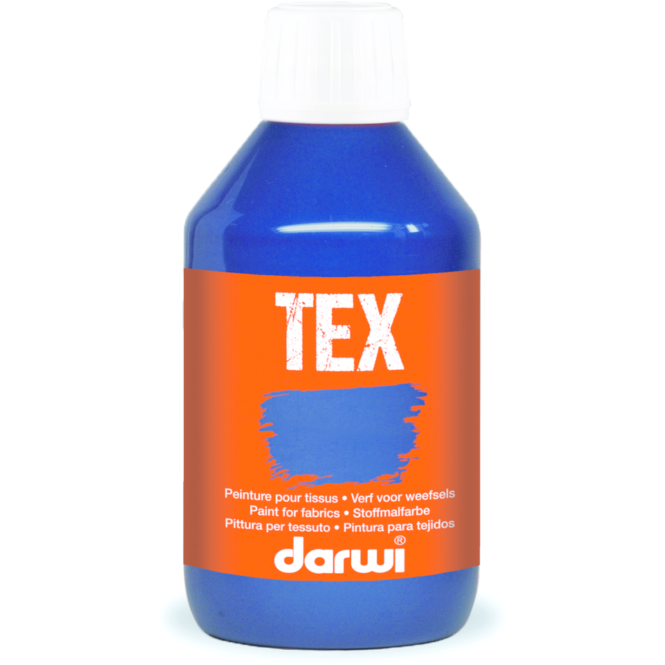 DARWI 250 ml fles Textielverf, donkerblauw Met textielverf kun je een persoonlijk tintje geven aan je accessoires of je oude kleding nieuw leven inblazen! Deze verf is veelzijdig en eenvoudig te gebruiken, je kan ze aanbrengen met een penseel, pipet of sjabloon op verschillende natuurlijke (katoen, linnen, jute, wol, zijde) en synthetische stoffen, of ze nu licht of donker, dun of dik zijn. De romige textuur maakt het mogelijk om precieze lijnen en subtiele mengsels te maken. De samenstelling van de verf zorgt voor een uitstekende hechting aan de stofvezels. De geverfde stof blijft soepel en is wasbestendig. Gebruiksaanwijzing: Schud de fles goed voor gebruik. Voor een optimale hechting, was de stof voor het aanbrengen van de verf en gebruik geen wasverzachter. Zorg er altijd voor dat de stof schoon en droog is vooraleer je de verf aanbrengt. Om de creatie wasbestendig te maken, strijk je na het drogen de stof aan de achterkant gedurende 5 minuten met een strijkijzer zonder stoom, op de juiste temperatuur. Gebruik dekwit voor meer of minder dekkende tinten te creëren, afhankelijk van de kleur van de te verven stof (mengverhouding: 50% - 50%).