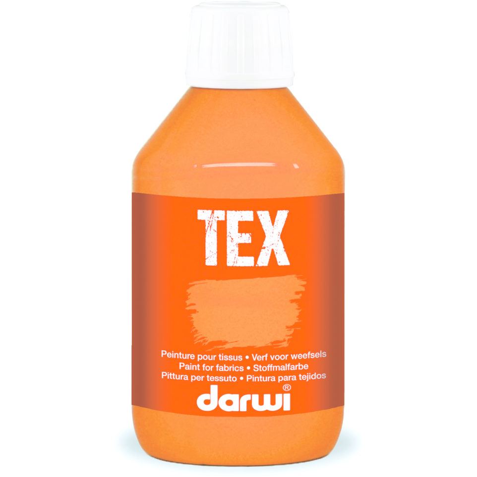DARWI 250 ml fles Textielverf, oranje Met textielverf kun je een persoonlijk tintje geven aan je accessoires of je oude kleding nieuw leven inblazen! Deze verf is veelzijdig en eenvoudig te gebruiken, je kan ze aanbrengen met een penseel, pipet of sjabloon op verschillende natuurlijke (katoen, linnen, jute, wol, zijde) en synthetische stoffen, of ze nu licht of donker, dun of dik zijn. De romige textuur maakt het mogelijk om precieze lijnen en subtiele mengsels te maken. De samenstelling van de verf zorgt voor een uitstekende hechting aan de stofvezels. De geverfde stof blijft soepel en is wasbestendig. Gebruiksaanwijzing: Schud de fles goed voor gebruik. Voor een optimale hechting, was de stof voor het aanbrengen van de verf en gebruik geen wasverzachter. Zorg er altijd voor dat de stof schoon en droog is vooraleer je de verf aanbrengt. Om de creatie wasbestendig te maken, strijk je na het drogen de stof aan de achterkant gedurende 5 minuten met een strijkijzer zonder stoom, op de juiste temperatuur. Gebruik dekwit voor meer of minder dekkende tinten te creëren, afhankelijk van de kleur van de te verven stof (mengverhouding: 50% - 50%).