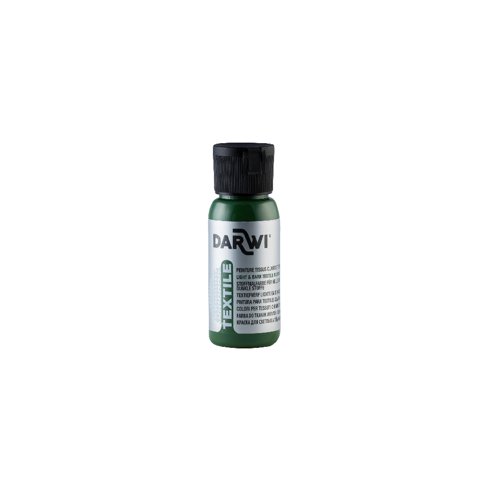 DARWI 50 ml fles Textielverf, avocadogroen Met textielverf kun je een persoonlijk tintje geven aan je accessoires of je oude kleding nieuw leven inblazen! Deze verf is veelzijdig en eenvoudig te gebruiken, je kan ze aanbrengen met een penseel, pipet of sjabloon op verschillende natuurlijke (katoen, linnen, jute, wol, zijde) en synthetische stoffen, of ze nu licht of donker, dun of dik zijn. De romige textuur maakt het mogelijk om precieze lijnen en subtiele mengsels te maken. De samenstelling van de verf zorgt voor een uitstekende hechting aan de stofvezels. De geverfde stof blijft soepel en is wasbestendig. Gebruiksaanwijzing: Schud de fles goed voor gebruik. Voor een optimale hechting, was de stof voor het aanbrengen van de verf en gebruik geen wasverzachter. Zorg er altijd voor dat de stof schoon en droog is vooraleer je de verf aanbrengt. Om de creatie wasbestendig te maken, strijk je na het drogen de stof aan de achterkant gedurende 5 minuten met een strijkijzer zonder stoom, op de juiste temperatuur. Gebruik dekwit voor meer of minder dekkende tinten te creëren, afhankelijk van de kleur van de te verven stof (mengverhouding: 50% - 50%).