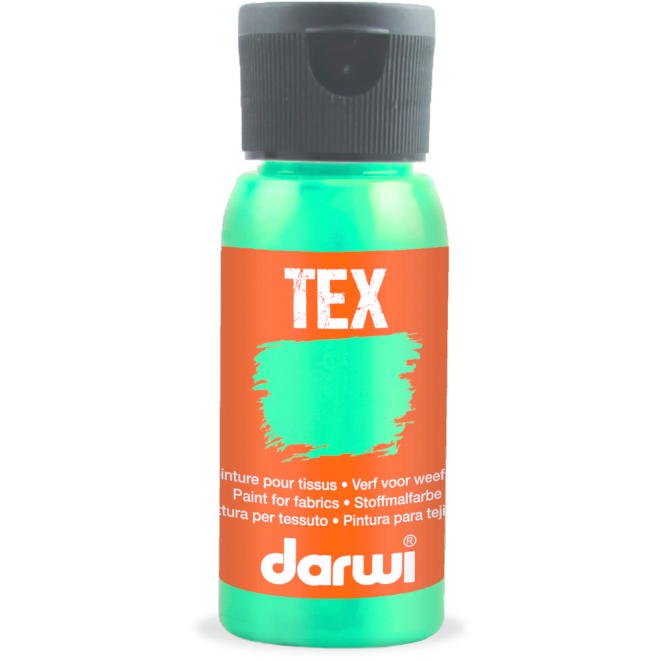 DARWI 50 ml fles Textielverf, smaragd parelmoer Met textielverf kun je een persoonlijk tintje geven aan je accessoires of je oude kleding nieuw leven inblazen! Deze verf is veelzijdig en eenvoudig te gebruiken, je kan ze aanbrengen met een penseel, pipet of sjabloon op verschillende natuurlijke (katoen, linnen, jute, wol, zijde) en synthetische stoffen, of ze nu licht of donker, dun of dik zijn. De romige textuur maakt het mogelijk om precieze lijnen en subtiele mengsels te maken. De samenstelling van de verf zorgt voor een uitstekende hechting aan de stofvezels. De geverfde stof blijft soepel en is wasbestendig. Gebruiksaanwijzing: Schud de fles goed voor gebruik. Voor een optimale hechting, was de stof voor het aanbrengen van de verf en gebruik geen wasverzachter. Zorg er altijd voor dat de stof schoon en droog is vooraleer je de verf aanbrengt. Om de creatie wasbestendig te maken, strijk je na het drogen de stof aan de achterkant gedurende 5 minuten met een strijkijzer zonder stoom, op de juiste temperatuur. Gebruik dekwit voor meer of minder dekkende tinten te creëren, afhankelijk van de kleur van de te verven stof (mengverhouding: 50% - 50%).