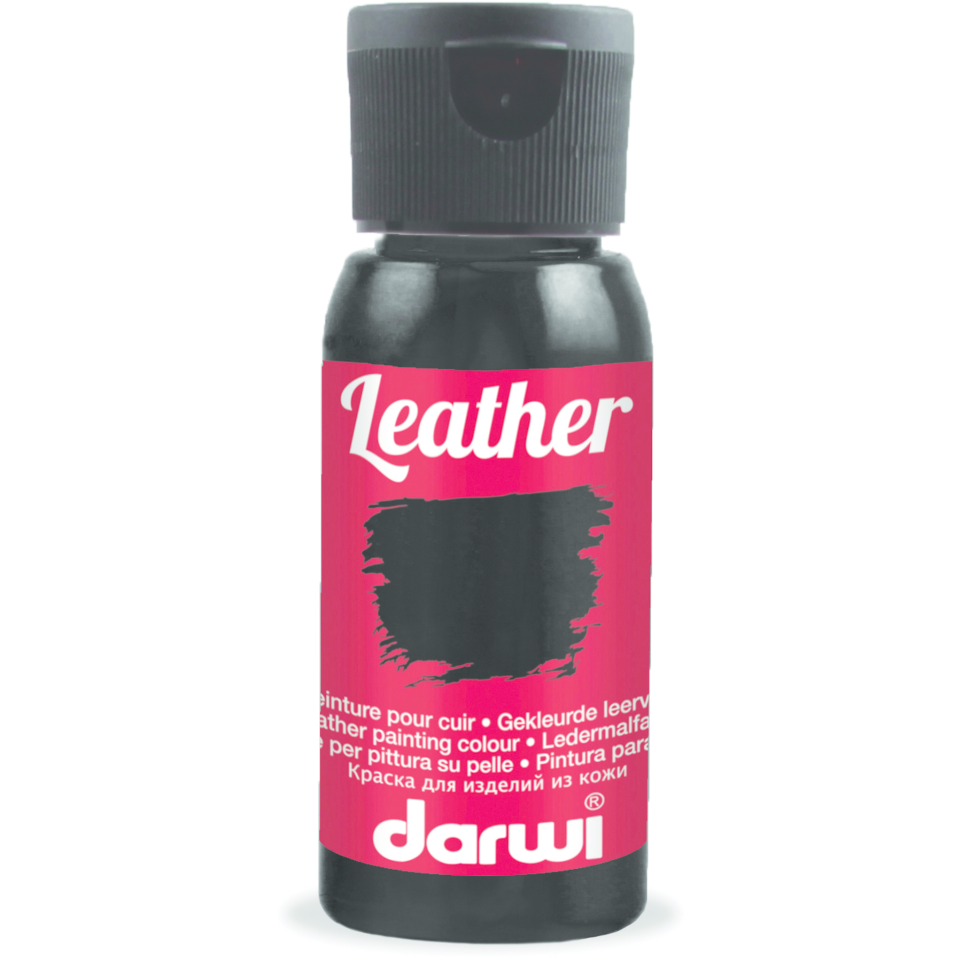 DARWI 50 ml fles leerverf, zwart Leerverf is speciaal ontworpen om sneakers, tassen of jassen in leer of synthetisch leer een nieuwe uitstraling te geven en te personaliseren. De verf tast de kwaliteit van het leer niet aan, waardoor het leer soepel blijft. Wanneer de verf wordt aangebracht met een penseel geeft ze stijl en een vleugje originaliteit aan leren accessoires en kleding. De verf is prettig om mee te werken, soepel en duurzaam. Het is essentieel om het oppervlak goed voor te bereiden en het grondig schoon te maken voor een goede hechting van de verf. Gebruiksaanwijzing: De fles goed schudden voor gebruik. Ontvet en reinig het oppervlak voor het aanbrengen.