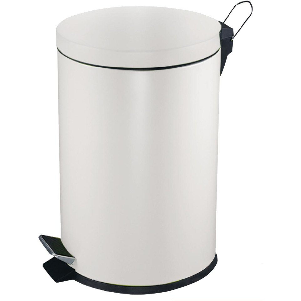 Compacte, ronde pedaalemmer van 5 liter in wit, ideaal voor gebruik in toiletten, badkamers, kleinere kantoren of onder bureaus voor hygiënische en discrete afvalverzameling.