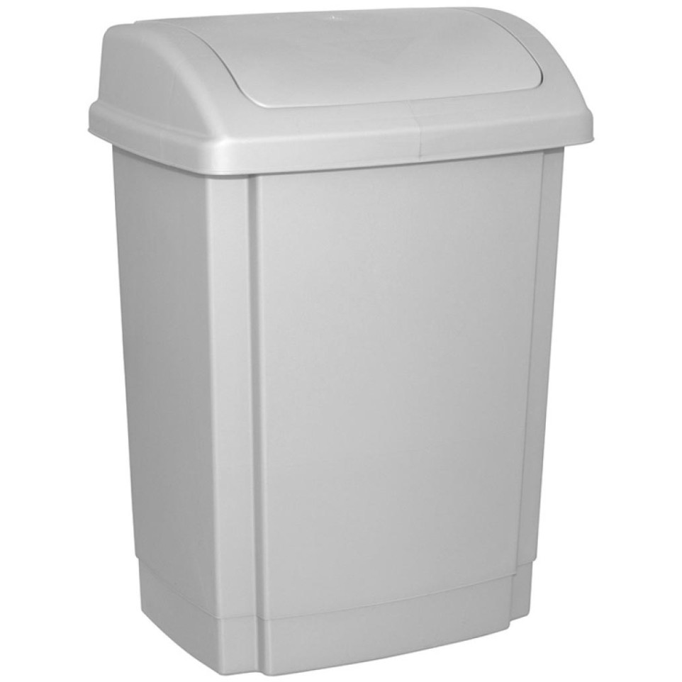 - Uitgerust met een swing deksel dat automatisch terugvalt na gebruik, waardoor afval aan het zicht onttrokken blijft