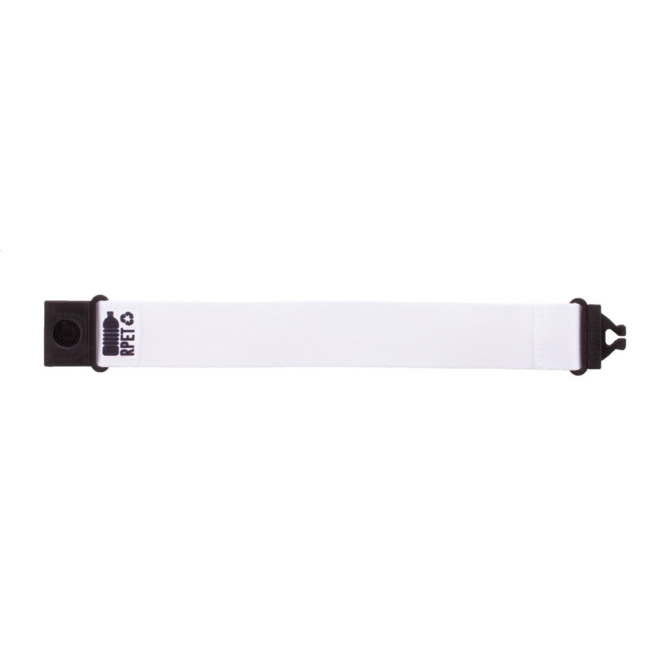 Deze polsband is vervaardigd uit gerecycled RPET-polyester met een kunststof sluiting.