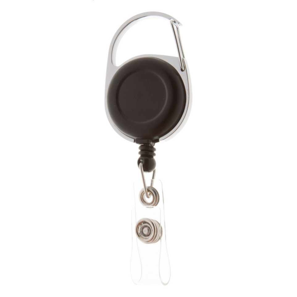 De Hooky black pasjeshouder is een praktische badgehouder van metaal en kunststof, uitgerust met een intrekbaar koord en een stevige karabijnhaak. Ideaal voor dagelijks gebruik op kantoor, evenementen of in beveiligde omgevingen.