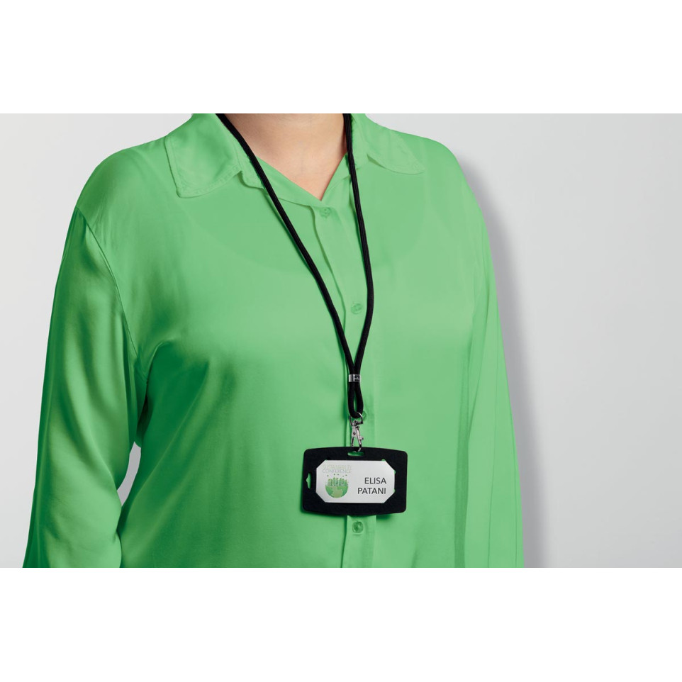 Bevestig eenvoudig uw badge, pasje of sleutelbos aan de karabijnhaak. Draag het koord comfortabel om de nek zodat identificatie altijd direct zichtbaar en bereikbaar is tijdens werk- of evenementenmomenten.