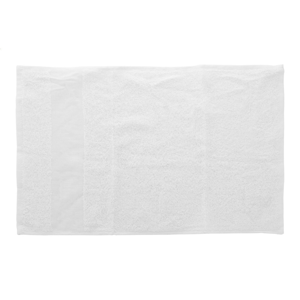 Kan ik de handdoek personaliseren met mijn bedrijfslogo? Ja, de handdoek heeft een speciaal ontworpen bedrukbare rand waar uw logo of tekst kan worden aangebracht.