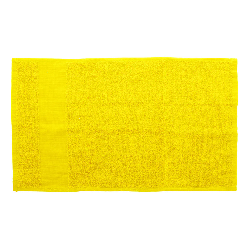 Bekijk producten in dezelfde categorieCompacte gastendoek van 30×50 cm, gemaakt van 100% katoenen badstof in fris geel. Ideaal voor gastentoiletten, sportclubs of wellnesscentra. Voorzien van handige ophanglus en een borduurstrook voor personalisatie.