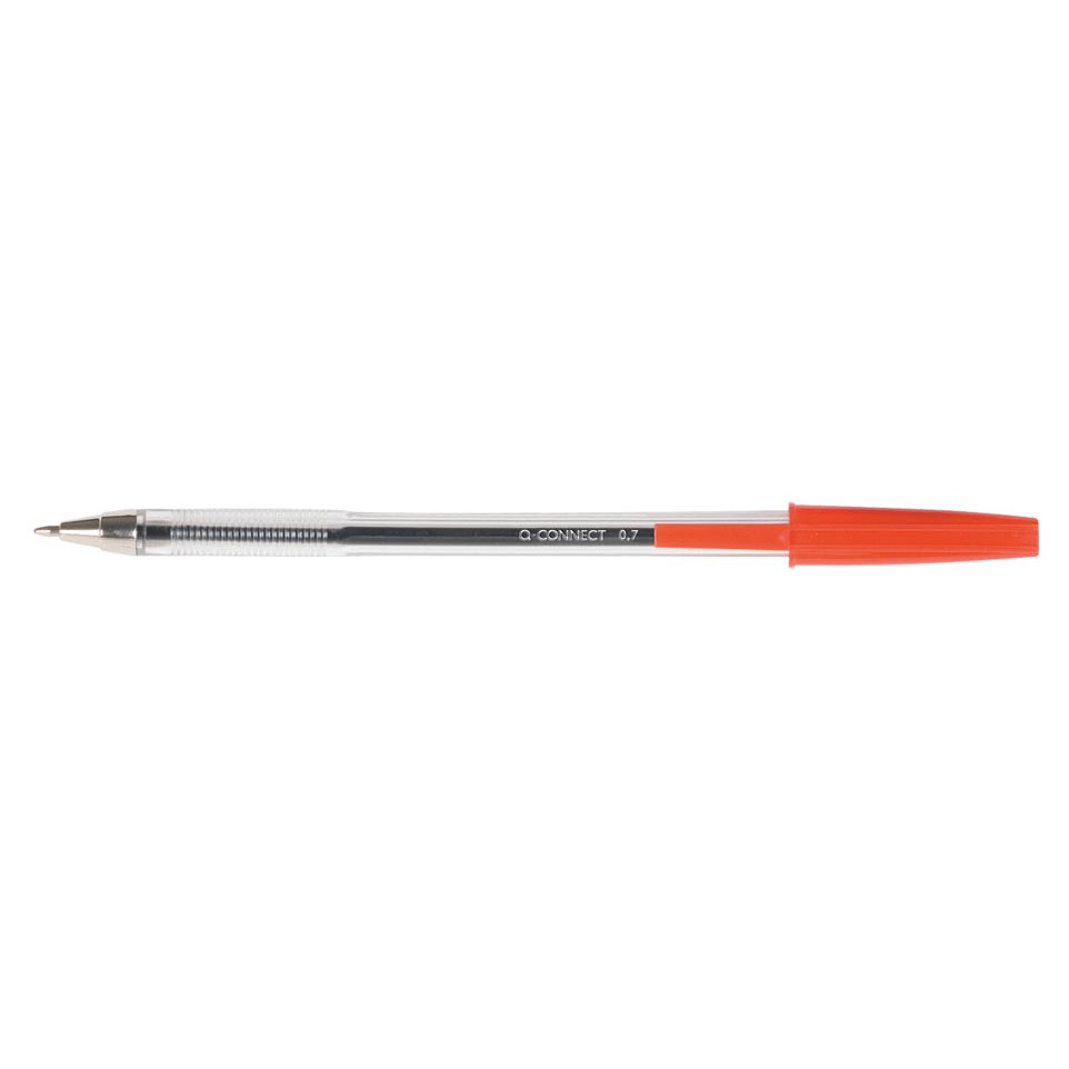 De Q-CONNECT balpen met dop, medium punt, 0,7 mm in rood is ideaal voor dagelijks schrijfwerk op kantoor, op school of thuis. Geschikt voor taken zoals aantekeningen maken, formulieren invullen en correcties markeren.