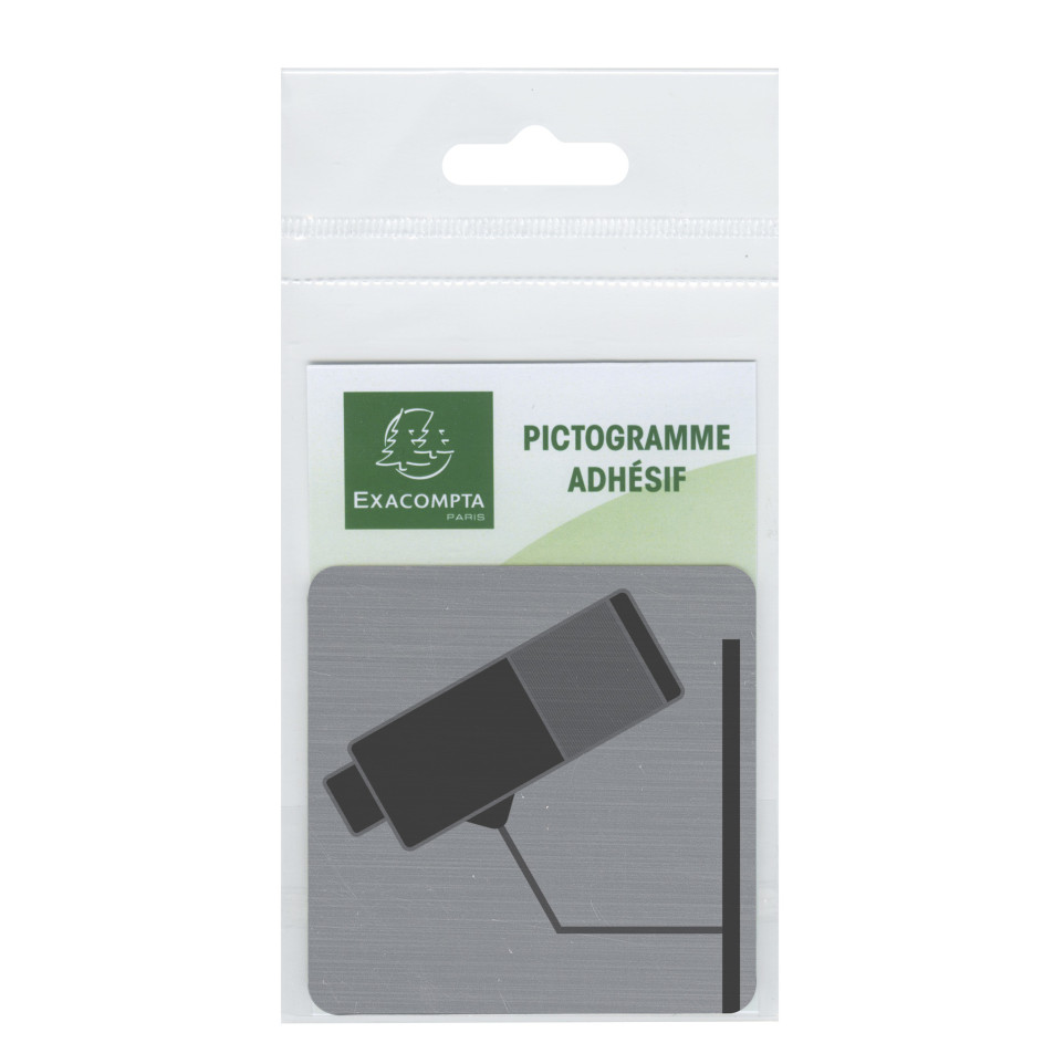 Zelfklevend verticaal plaatje in imitatie aluminium Camera bewaking 7 ,5x7,5 cm Videobewaking is een hulpmiddel om de veiligheid in je bedrijf te garanderen. Het is wettelijk verplicht om consumenten en werknemers te informeren over de aanwezigheid van een dergelijk systeem. Dit bord duidt op belangrijke informatie voor gebruikers. Dit zelfklevende plaatje is gedrukt op een ondergrond van 0,8 mm dik in geborsteld aluminium. Het is snel en gemakkelijk op alle soorten oppervlakken aan te brengen. Dit product zit verpakt op een recyclebaar kaartje met ophangoog.