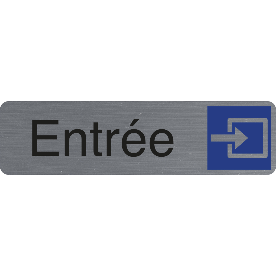 Plaque adhésive imitation aluminium Entrée 16,5X4,4 cm Une bonne signalétique est indispensable pour informer les usagers et leur permettre de se repérer. Ce panneau permet ainsi d'orienter les usagers. Cette plaque imprimée sur un support d'épaisseur 0,8 mm, d'aspect aluminium brossé est auto-adhésive. Elle se fixe facilement et rapidement sur tous types de supports. L'encre traitée anti-UV garantie une très bonne tenue dans le temps de ce panneau. Fabriqué en France