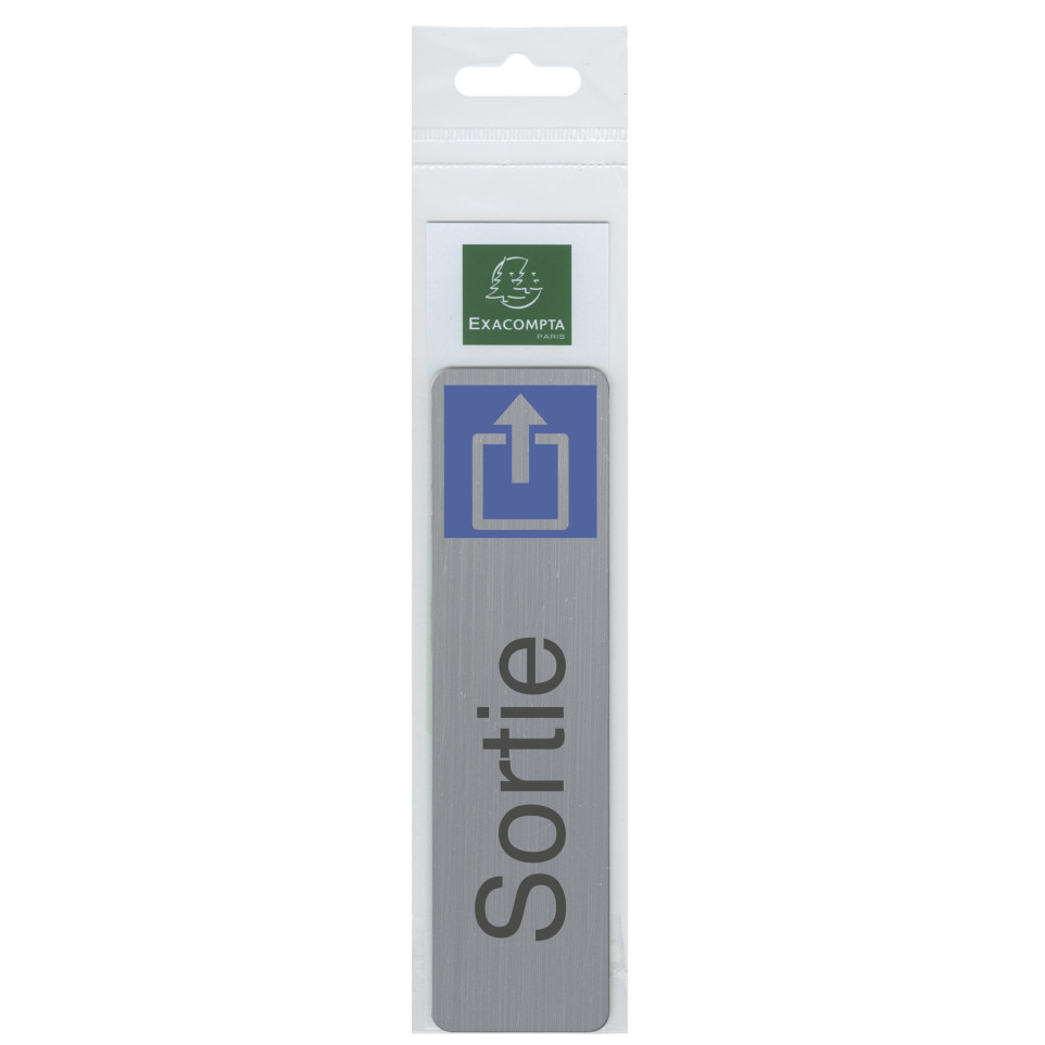 Plaque adhésive imitation aluminium Sortie 16,5X4,4 cm Une bonne signalétique est indispensable pour informer les usagers et leur permettre de se repérer. Ce panneau permet ainsi d'orienter les usagers. Cette plaque imprimée sur un support d'épaisseur 0,8 mm, d'aspect aluminium brossé est auto-adhésive. Elle se fixe facilement et rapidement sur tous types de supports. L'encre traitée anti-UV garantie une très bonne tenue dans le temps de ce panneau. Fabriqué en France