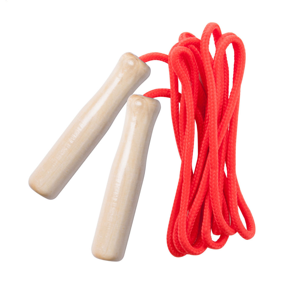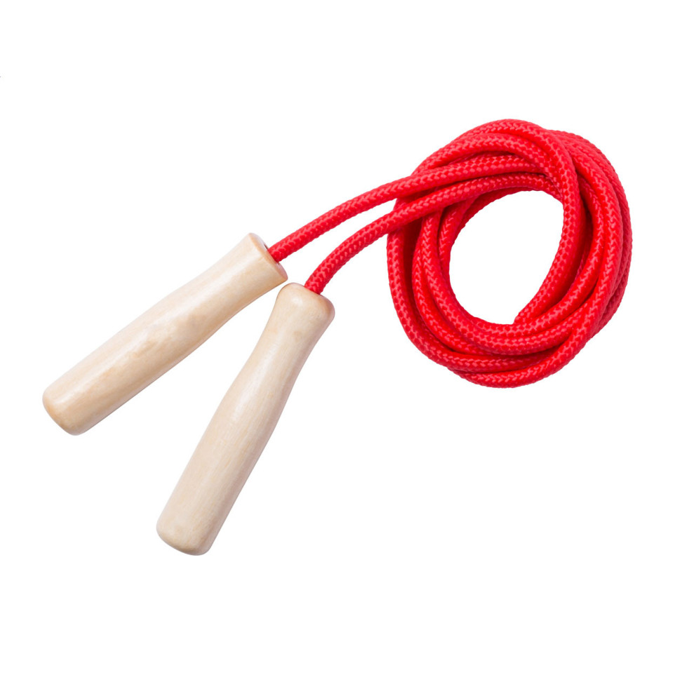 - Gemaakt met natuurlijke houten handgrepen en een rood kunststof touw met een diameter van 0,7 cm en een lengte van 2,6 meter