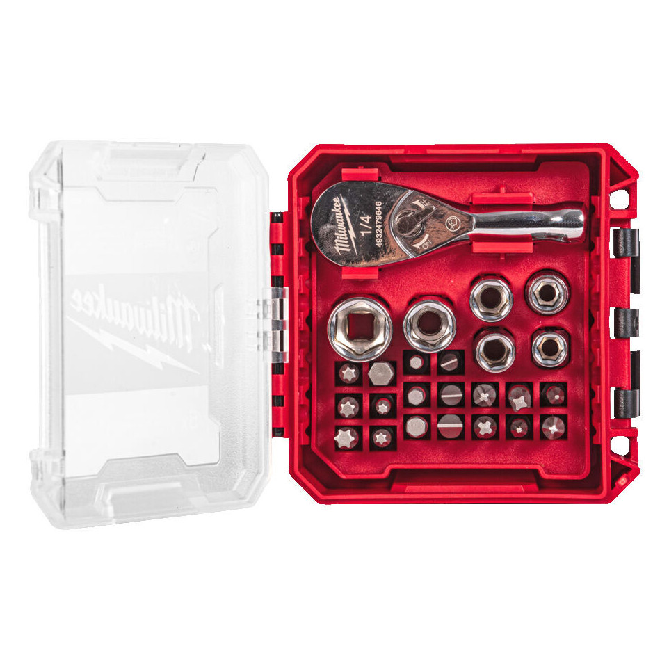 De Milwaukee 25-delige compacte ratelsleutelset (1/4") biedt een complete oplossing voor schroef- en montagewerkzaamheden in moeilijk bereikbare ruimtes, dankzij een compacte ratel en een uitgebreide selectie doppen en bits.