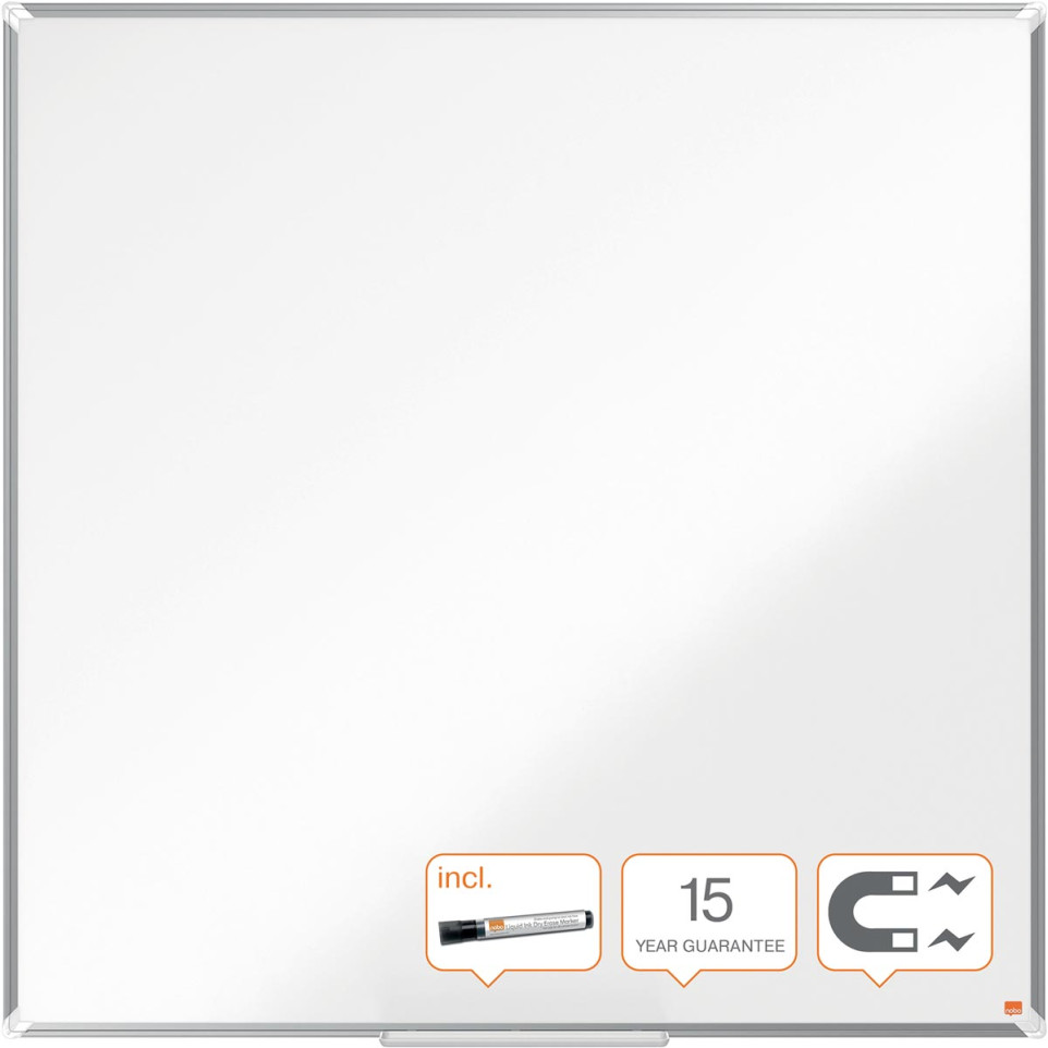 De Nobo Premium Plus whiteboard is ideaal voor vergaderkamers, klaslokalen en kantoorruimtes. Het biedt een ruimte van 120 x 120 cm om te schrijven en te tekenen, gemaakt van gelakt staal voor langdurige gebruik en magnetisch om magnetische objecten te kunnen plaatsen.