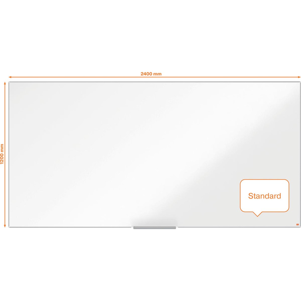 De Nobo Impression Pro whiteboard is een geëmailleerd, magnetisch bord van 240 x 120 cm, ontworpen voor professioneel en intensief gebruik in vergaderruimtes, klaslokalen en kantoren. Dankzij het moderne, smalle frame past het stijlvol in elke werkomgeving.