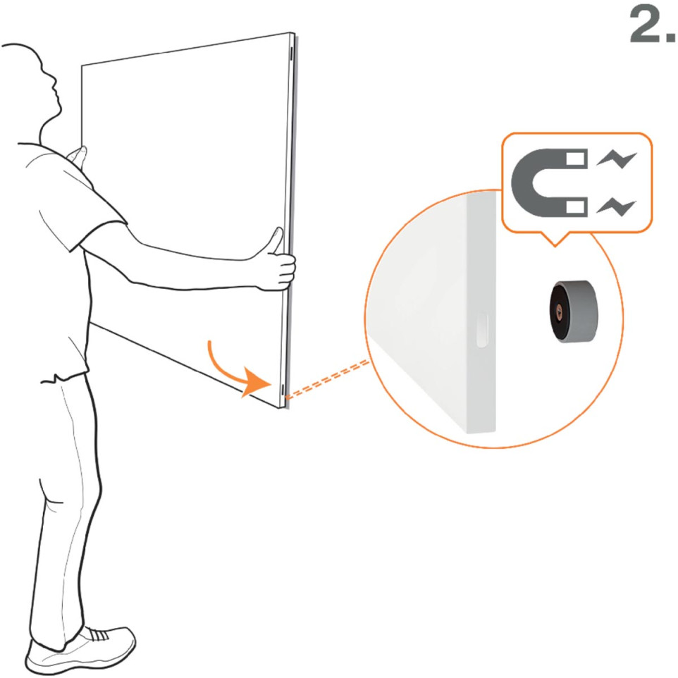 Het bord wordt geleverd met een eenvoudig magnetisch montagesysteem en bevestigingsmaterialen voor een snelle, stabiele installatie.