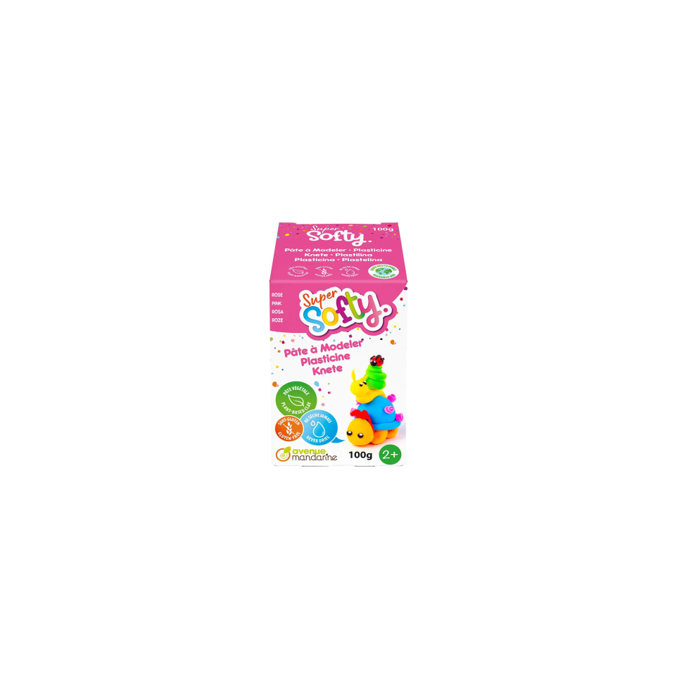 Doos Super Softy 100g, Roze Deze roze extra zachte boetseerklei droogt nooit uit en blijft altijd soepel. Herbruikbaar en eindeloos kneedbaar zonder je handen vuil te maken. De 10 kleuren in het SOFTY-assortiment zijn perfect mengbaar. De SUPER SOFTY boetseerklei is een plantaardige klei gemaakt van was/vaseline en maïszetmeel. Deze klei is GMO-, gluten- en conserveermiddelenvrij. Hypoallergeen. Ideaal voor plastilinografie, kan ook worden gebruikt voor vingerverven, sjabloneren en alle creatieve technieken waarbij de klei als verf wordt gemanipuleerd. Voor kinderen vanaf 2 jaar, ideaal vanaf de crèche. Geproduceerd in België.