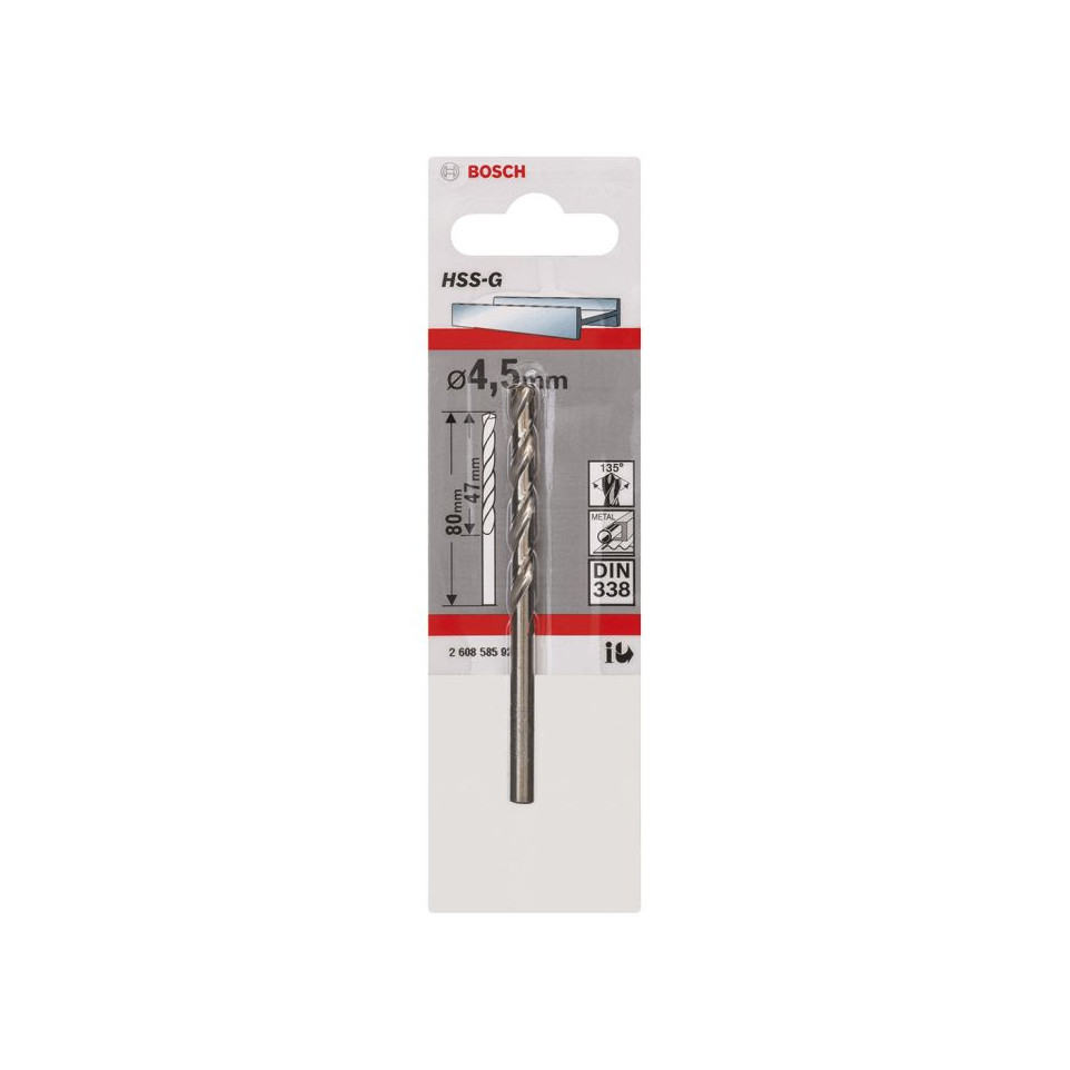 Metaalboor Ø4,5mm van Bosch, ontworpen voor nauwkeurig en veelzijdig boren in diverse metalen. Ideaal voor gebruik in werkplaatsen, op de bouwplaats of bij doe-het-zelf projecten waarbij metaalbewerking vereist is.
