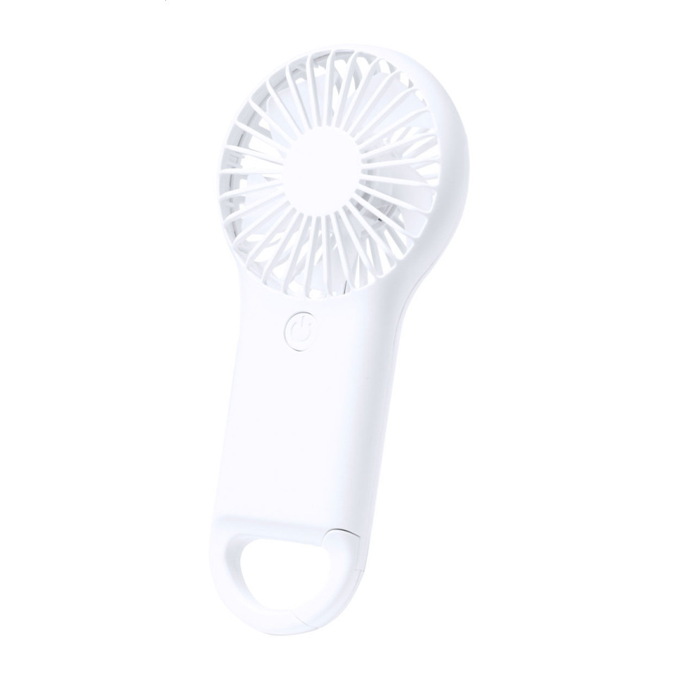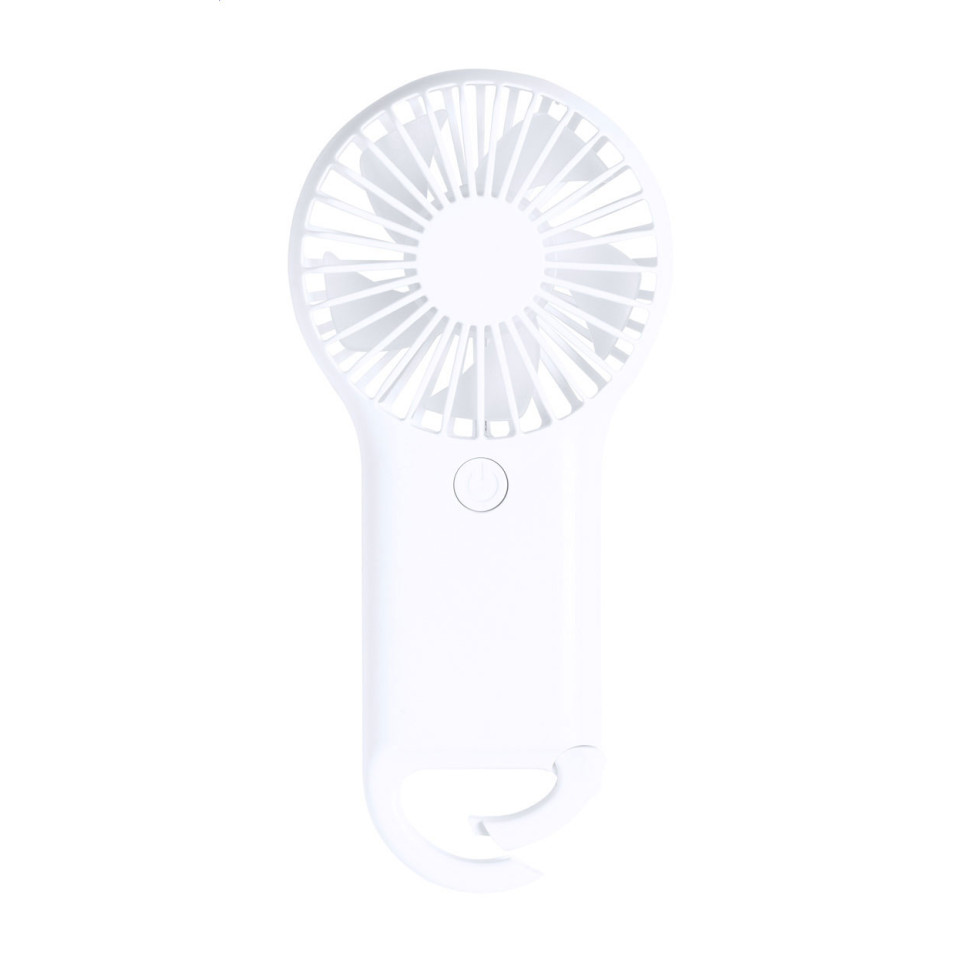 Elektrische handventilator van wit ABS-kunststof, perfect voor verkoeling tijdens warme dagen. Compact formaat voor gemakkelijk meenemen naar buitenactiviteiten, festivals of op reis.