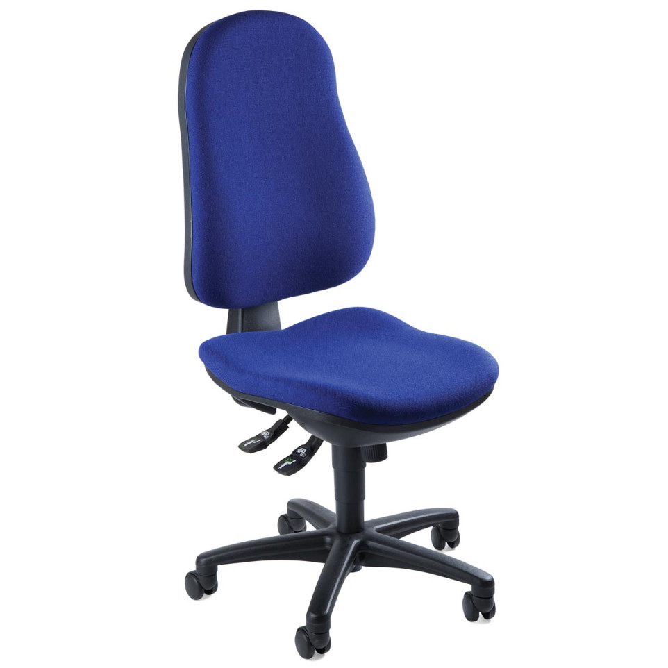 De Topstar bureaustoel Support SY, blauw, is een ergonomische kantoorstoel met punt-synchroon mechanisme en gevormde wervelzit, ontworpen om langdurig comfortabel te ondersteunen bij werkplekken op kantoor of thuis.