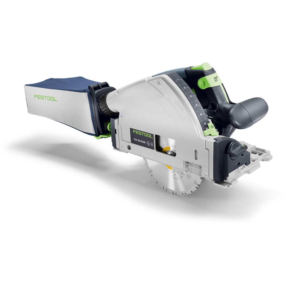 De Festool TSC 55 KSEB-Basic is een invalcirkelzaag op 18 V accu, ontworpen voor nauwkeurige rechte en verstekzagen in hout en plaatmateriaal. Geleverd als Basic-versie zonder accu of oplader.