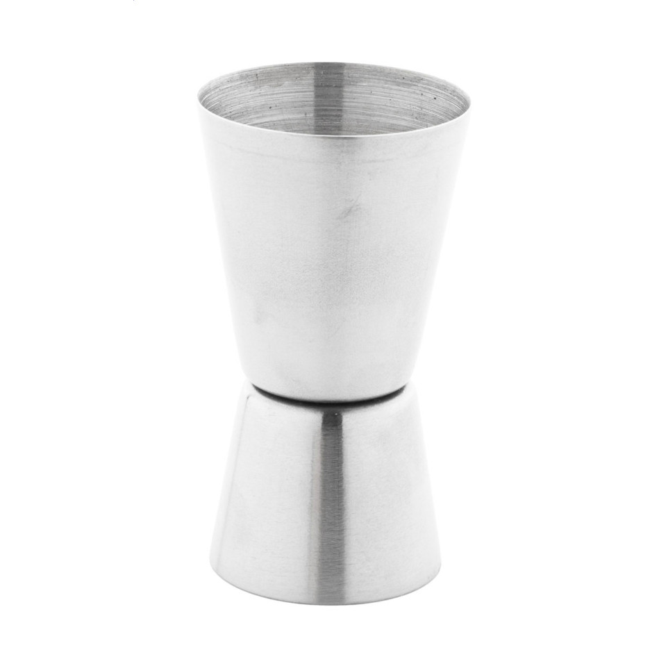 De jigger, zeef en barlepel zijn van roestvrij staal; de kurkentrekker en muddler hebben een houten handgreep.