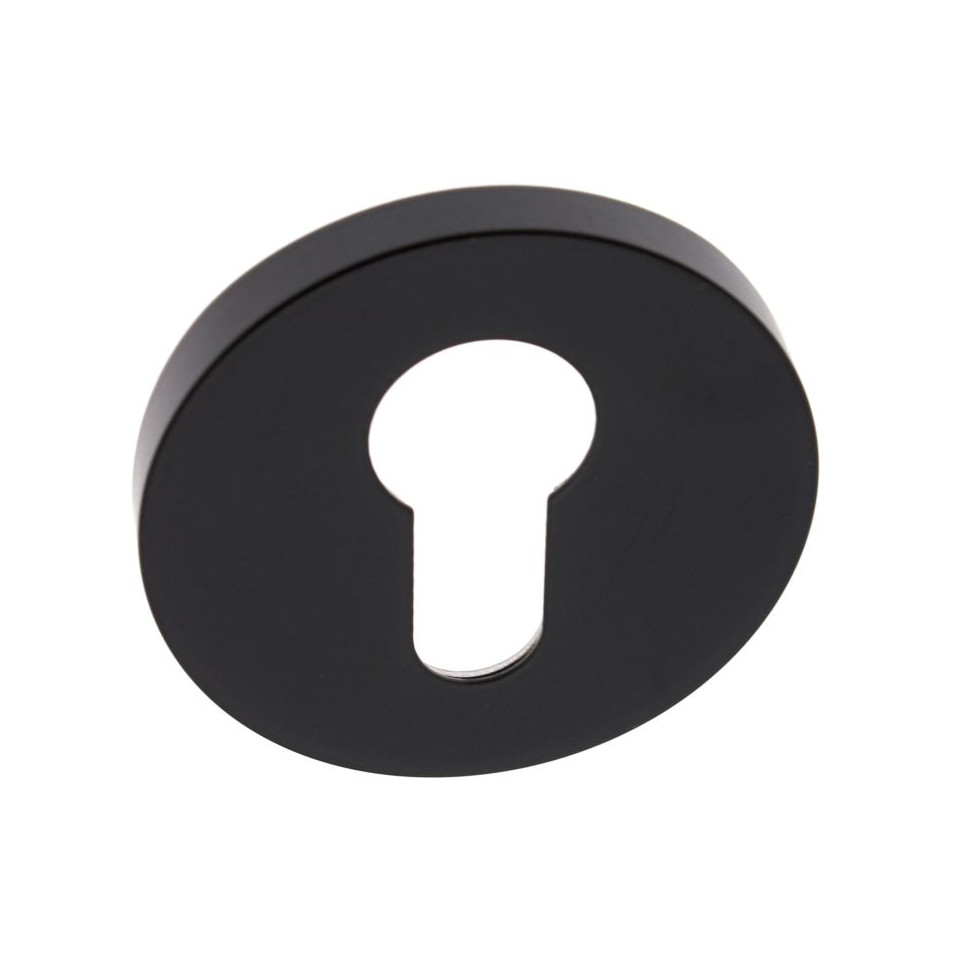 Paar rosaces profielcilinder PZ Ø53/6mm OFFICE in matzwart roestvast staal 304, geschikt voor professioneel gebruik en moderne interieurs; biedt stijlvol deurbeslag voor binnendeuren in kantoorgebouwen.