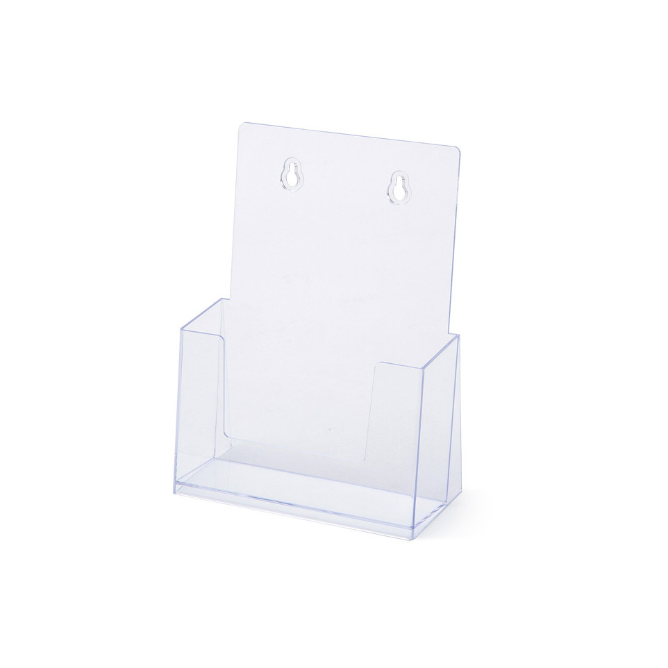 Plaats eenvoudig uw folders in de houder of bevestig hem aan de muur met schroeven via de boorgaten. Geschikt voor zowel staande als wandpresentaties.