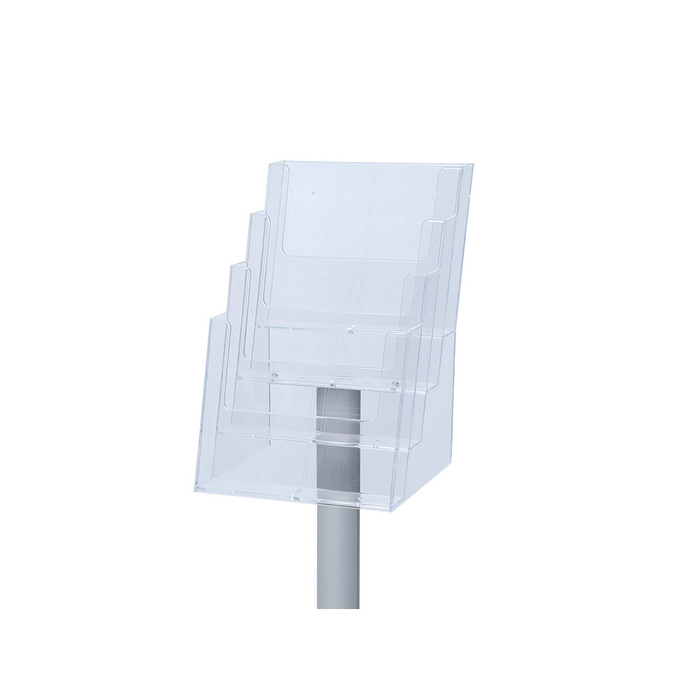 Deze brochurehouder biedt ruimte aan vier afzonderlijke A4-compartimenten.