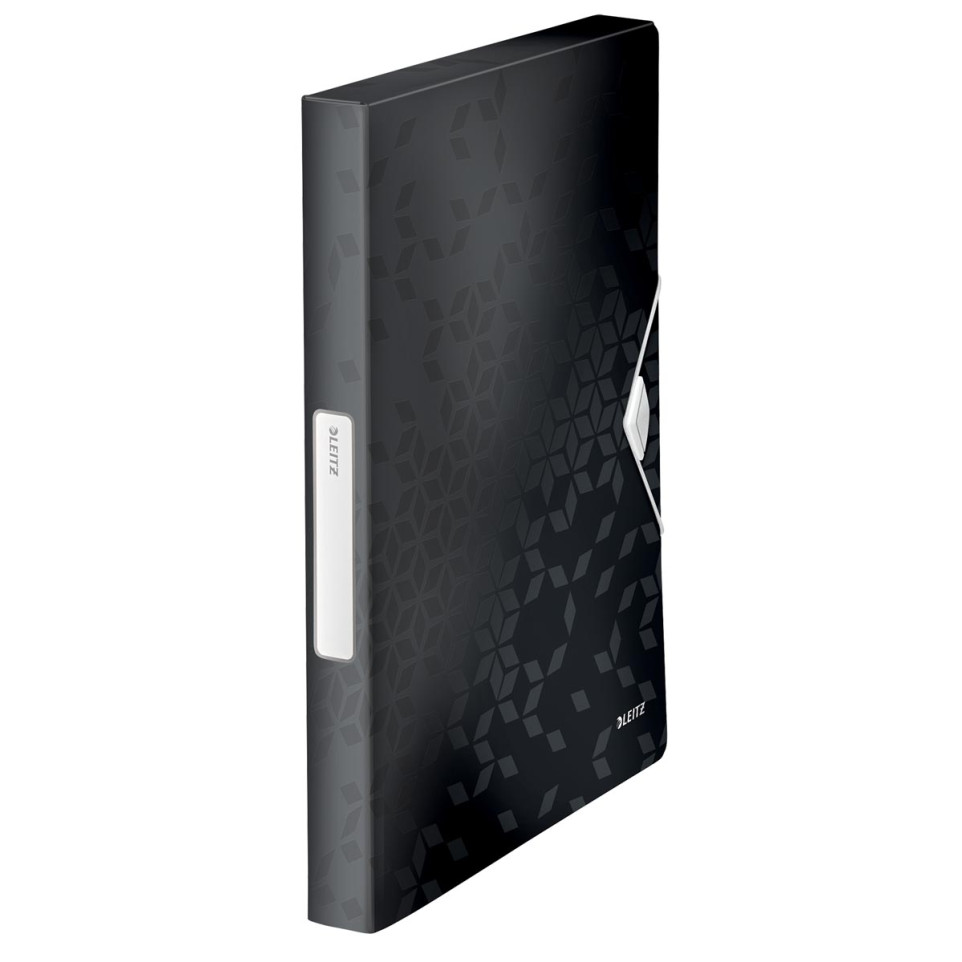 De Leitz WOW elastobox ft A4 in zwart is een praktische documentenmap uit kunststof, ontworpen voor het veilig meenemen en opbergen van documenten, mappen en papieren tot formaat A4 (25 x 33 cm). Ideaal voor dagelijks gebruik op kantoor, thuis of onderweg.