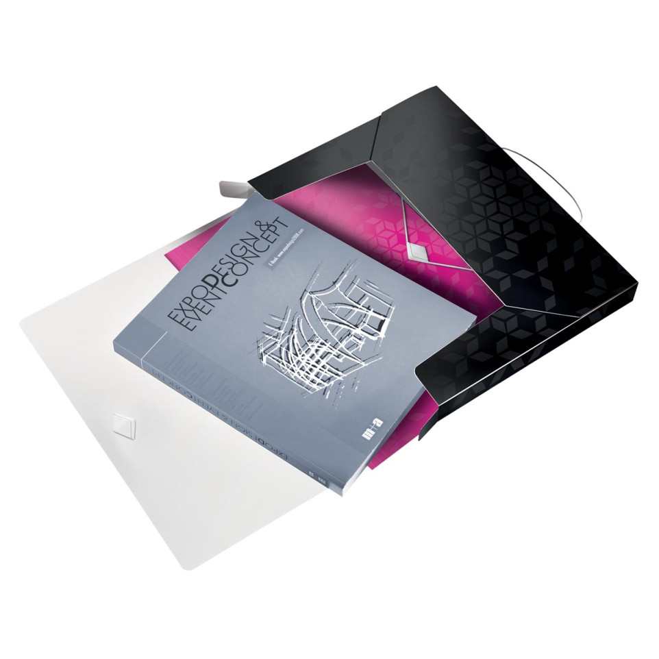 Plaats A4-documenten of andere grote papieren in de box, sluit eenvoudig af met de elastische band en neem alles georganiseerd mee. De box beschermt de inhoud tegen stof, vuil en beschadiging, en is door het lichte materiaal eenvoudig te vervoeren of op te bergen.
