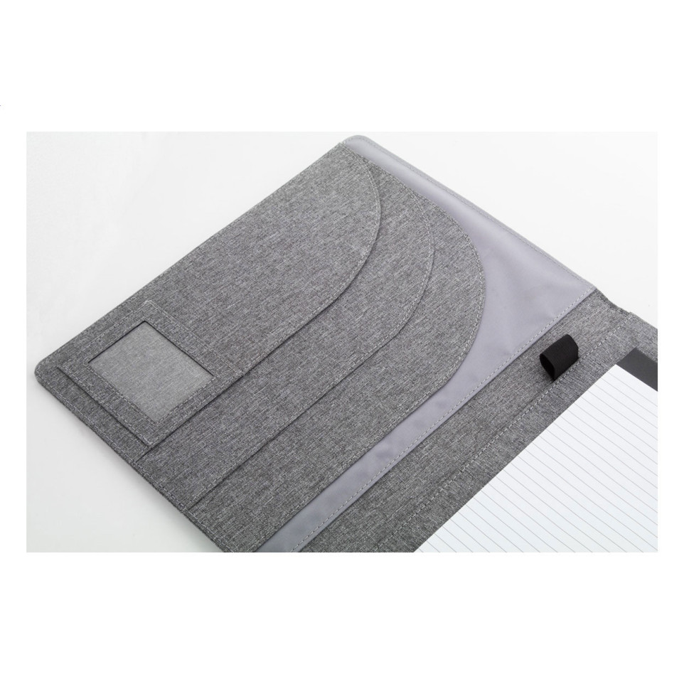 De Dennis RPET documentmap in ash grey is een duurzame A4-map gemaakt van gerecycled polyester met een ingebouwd notitieblok van 20 gelinieerde vellen. Perfect voor professionals die organisatie en milieubewustzijn willen combineren.