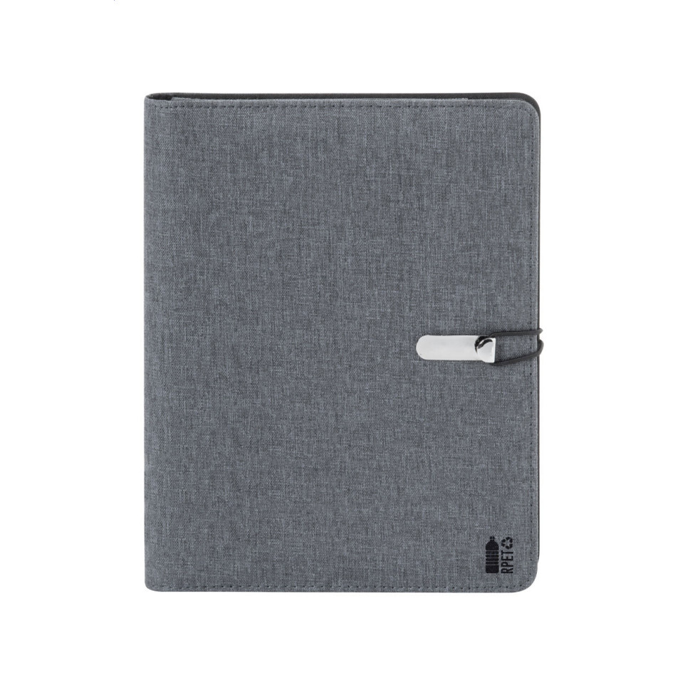 De Shepherd A5 documentmap in grijs is een compacte A5-map gemaakt van 300D gerecycled PET-polyester. Inclusief een notitieblok met 64 gelijnde vellen en diverse binnenvakken voor het organiseren van documenten, pennen en visitekaartjes—ideaal voor onderweg, vergaderingen of op kantoor.
