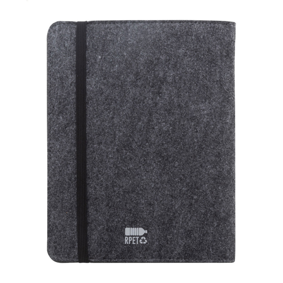 De buitenkant bestaat uit RPET-vilt, gemaakt van gerecyclede PET-flessen, wat de map duurzaam en milieubewust maakt.