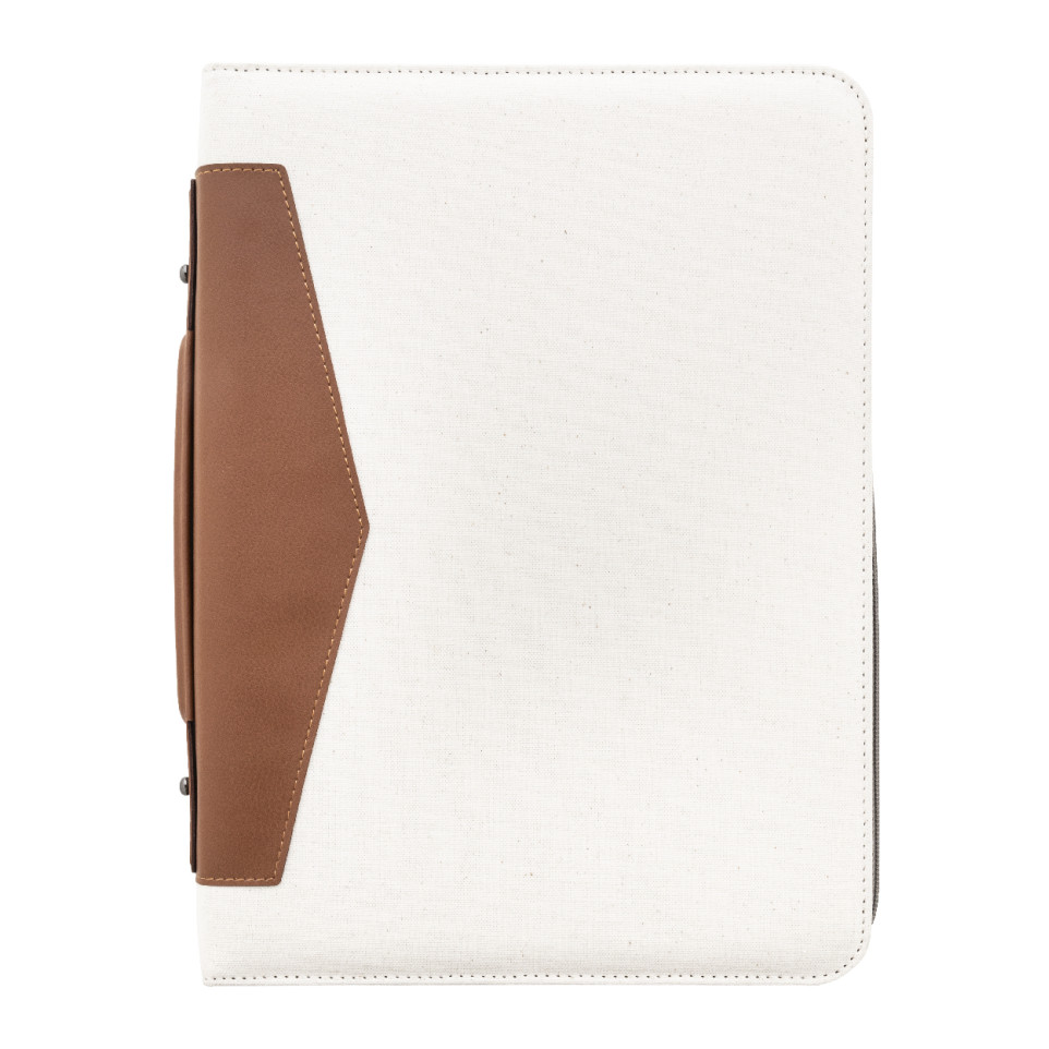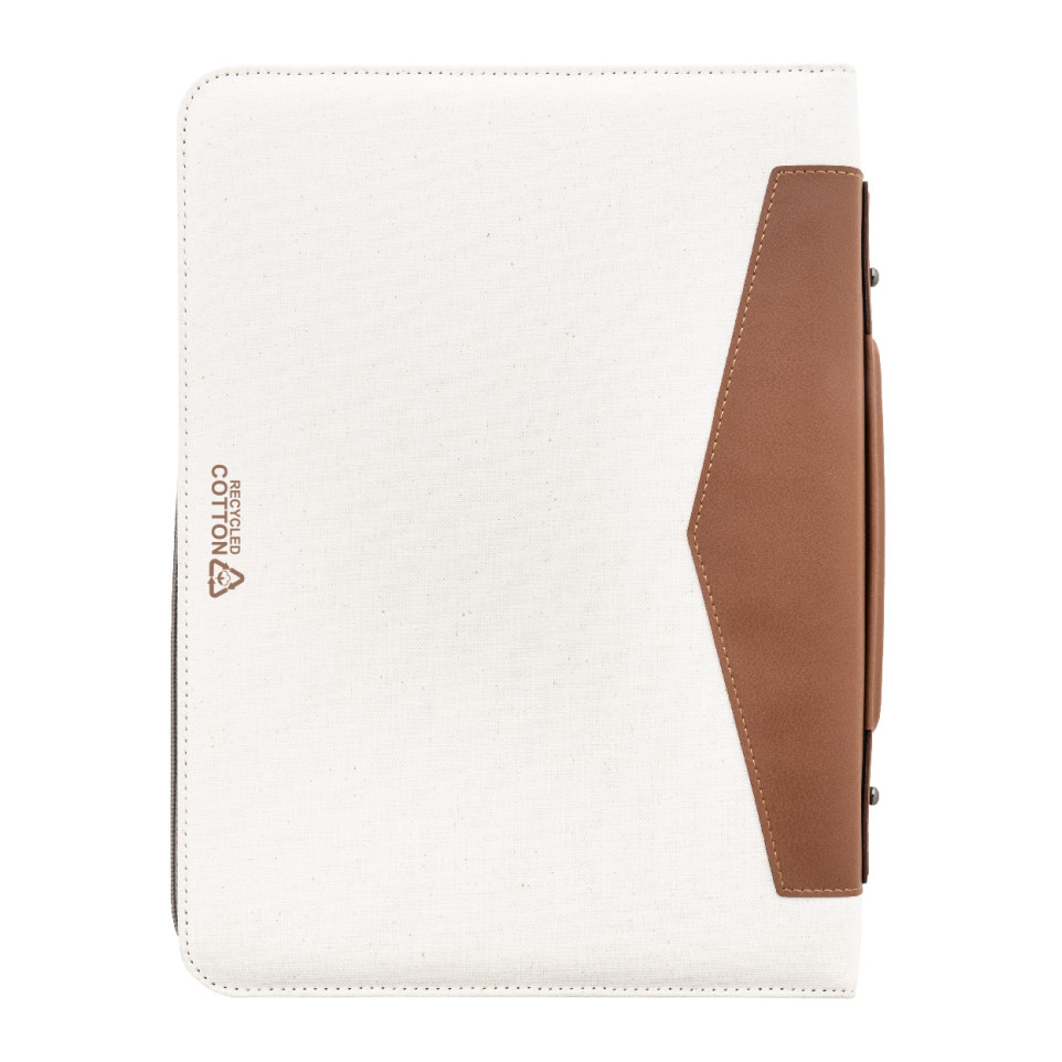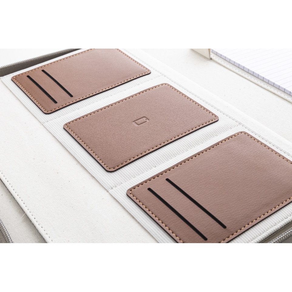 A4-documentenmap vervaardigd uit gerecycled canvas en gerecycled PU-leer, voorzien van ritssluiting, draaghendel en meerdere interne opbergvakken. Inclusief notitieblok met 20 gelinieerde vellen van gerecycled papier. Ideaal voor werk, studie of onderweg.