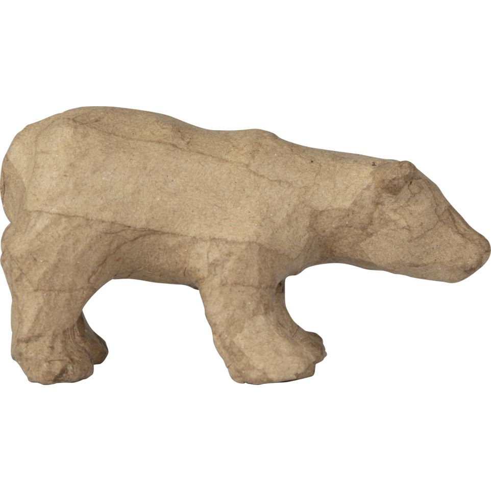 Ours polaire En papier mâché brun pulpé, ce support Décopatch est idéal pour être décoré selon vos envies. 1ère possibilité : le recouvrir de la peinture Gesso blanche (non fournie) avant de le peindre aux couleurs de votre choix. 2ème possibilité : le customiser avec le papier Décopatch et notre colle PaperPatch (non fournie). Rien de plus facile : déchirez ou découpez quelques morceaux de papier Décopatch d'environ 2x2 cm - Appliquez la colle sur le support. Déposez un morceau de papier sur la surface encollée et mettre une deuxième couche de colle dessus. Superposez les morceaux de papier pour recouvrir le support en mixant les couleurs et les motifs. 3ème possibilité : le recouvrir de colle PaperPatch (non fournie) puis appliquez nos paillettes Glit's par exemple (non fournies). A vous de jouer ! Un petit animal à customiser fidèle à l'original ou de façon complétement loufouque. Il devient objet de décoration, personnage d'hi stoires à raconter ou simple partenaire de jeu pour votre enfant. Support Décopatch en papier mâché fabriqué à la main. Chaque produit est unique !