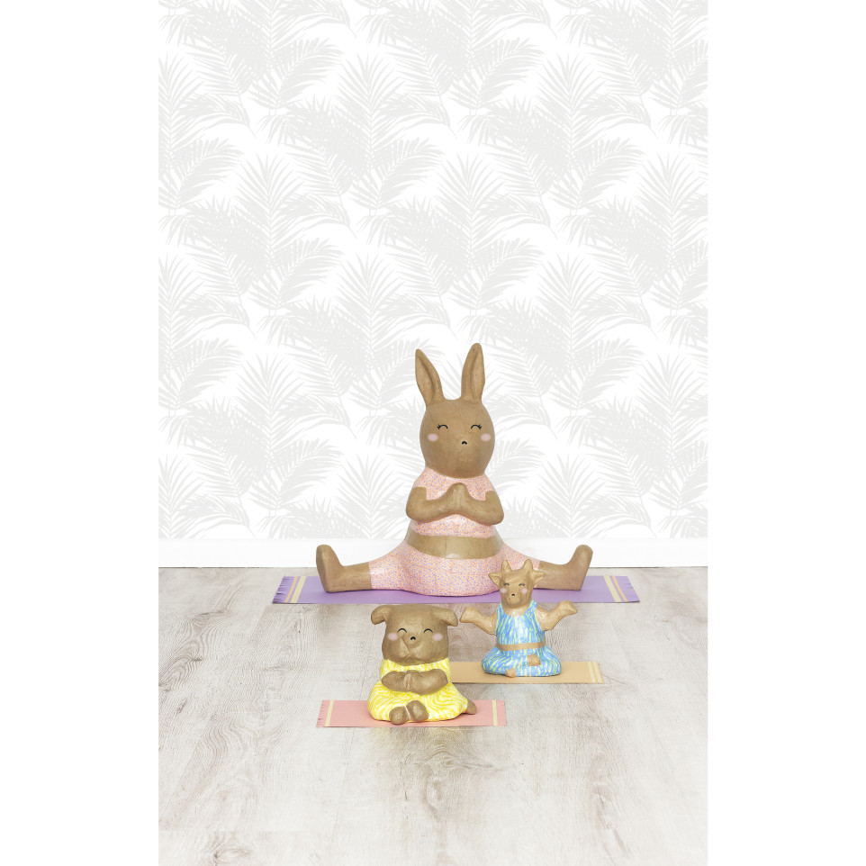 Konijn yoga 41 cm Multi-techniek: Dit konijn kan je op talloze manieren versieren, met Décopatch-papier, acrylverf, glitters en stickers, of je behoudt de natuurlijke kraftlook. De mogelijkheden zijn eindeloos! DIY Decoratie: Een konijntje om helemaal naar eigen smaak te versieren! Of je nu gaat voor authentiek of lekker gek, het wordt een decoratieve eyecatcher, een personage om verhaaltjes over te vertellen of een speelkameraadje voor je kind. Décopatch techniek: Scheur of knip een paar stukjes Décopatch papier van ongeveer 2x2 cm. Breng de PaperPatch vernislijm - niet meegeleverd - aan op het te versieren oppervlak. Leg een stukje papier op het gelijmde oppervlak en doe er een tweede laag lijm overheen. Herhaal dit proces door de stukjes papier te overlappen totdat het object geheel of gedeeltelijk bedekt is. Kenmerken: Dit handgemaakte konijn in yoga-houding is vervaardigd van bruin papier-maché waardoor elk exemplaar uniek is. Afmetingen: 46x18x41 cm. Ontworpen in Frankrijk: Décopatch is een Frans merk dat deel uitmaakt van de Clairefontaine Rhodia groep. Wij bieden kwaliteitsproducten voor personalisatie, decoratie en vrije tijd.