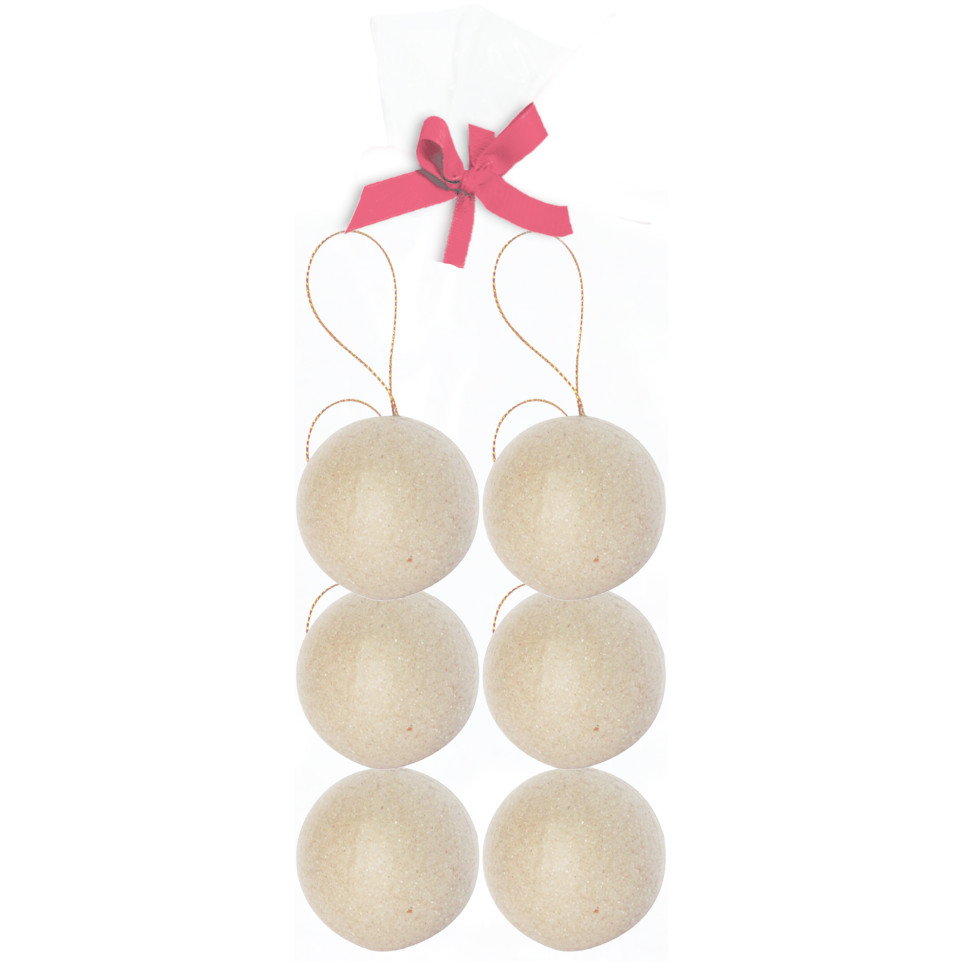 Kerstmis - Set van 6 ballen met koordje. De Décopatch kerstfiguren zijn gemaakt van maché papier en zijn beschikbaar in veel maten en vormen. Ø6,5cm