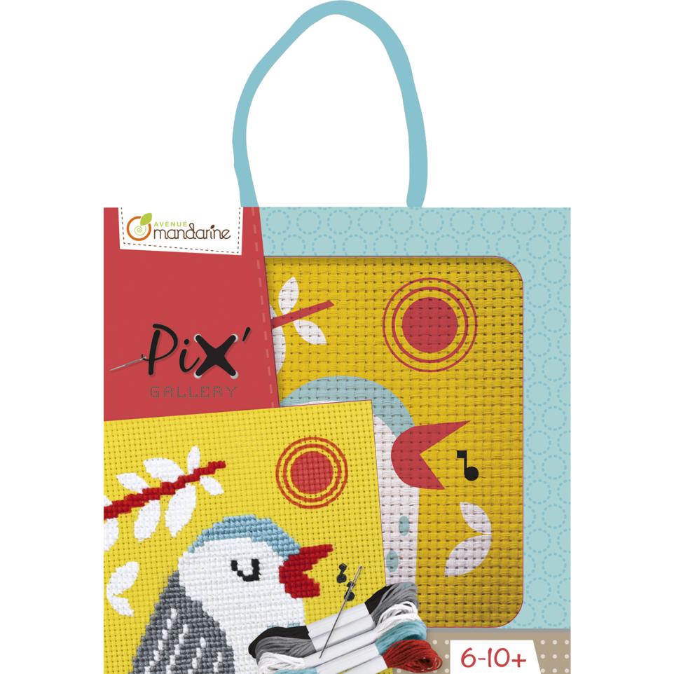 Pix'Gallery,Vogel Een 'fun' activiteit met een kleurrijk resultaat! Inhoud: Bedrukte stof 12,7x12,7cm - een kader 14x2x14cm - 5 draden - 1 naald Leeftijd 6/10+ 0