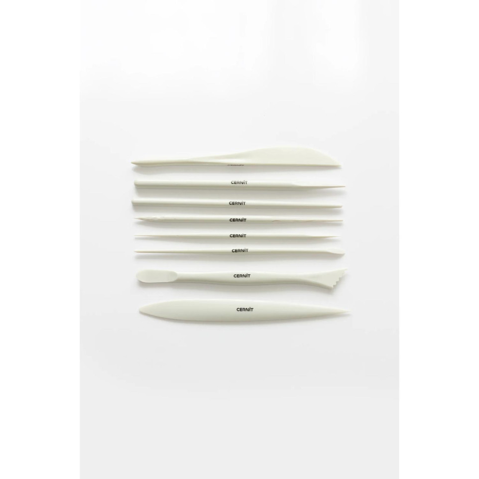 Cernit set 8 werktuigen EIGENSCHAPPEN : Ergonomisch gereedschap speciaal ontworpen voor het werken met bakklei (polymeer). Deze complete set bevat 8 hulpmiddelen om de klei te bewerken zonder eraan te blijven kleven. Elk instrument heeft aan de uiteinden een andere punt voor extra toepassingen en effecten. Deze Cernit kit met plastic tools is onmisbaar wanneer je budgetvriendelijk wil starten met boetseren. TOEPASSINGEN : Verfijnen, uithollen, snijden, schrapen, texturen aanbrengen, gladmaken, beitelen, enz... 16 mogelijke toepassingen in één kit! MATERIAAL : Plastic. BELANGRIJK : Deze gereedschappen zijn uitsluitend te gebruiken met klei. Mag niet in aanraking komen met voeding.