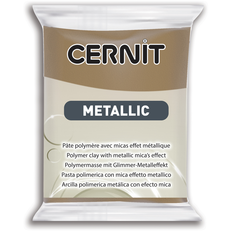 Cernit METALLIC 56g Antiek brons METALLIC : Bakklei (polymeer). Voor het verkrijgen van een hoogwaardig metaaleffect na het bakken. Bevat een grote hoeveelheid zeer fijne glitters (Mika genaamd). BAKINSTRUCTIES : Bak de klei op een temperatuur tussen 110°C (230°F) en 130°C (266°F) in een traditionele oven gedurende maximum 30 minuten. Zorgt voor geen geurhinder. Gaat niet barsten. Niet geschikt voor microgolfoven. Na het bakken, is de klei hard maar je kan ze nog altijd bewerken (schuren, schilderen, enz...) EIGENSCHAPPEN : Droogt niet uit. Na het bakken krijgt de klei vaste vorm, maar blijft ze soepel. De klei is geurloos, aangenaam om mee te werken, en blijft onbeperkt kneedbaar. Ze laat geen sporen na op je handen of gereedschap. Alle kleuren kunnen onderling worden gemengd om zo de gewenste tint te verkrijgen. Vegan. TOEPASSINGEN : Ideaal voor het maken van sieraden, reproducties, miniaturen, figuren enz. Zorg voor propere handen en een proper werkblad als je de klei bewerkt. Kneed de klei om ze zachter te maken vooraleer je ze bewerkt. Je kan ze boetseren, gieten, bedrukken of ze gebruiken in combinatie met andere materialen zoals stenen, parels, veren, enz. Je kan additieven zoals glitters, alcoholinkt enz. binnenin de klei toevoegen alvorens ze te bakken. GEWICHT : 56g. PRODUCTIE : Alle Cernit bakkleien worden gemaakt in België, in de buurt van Luik.