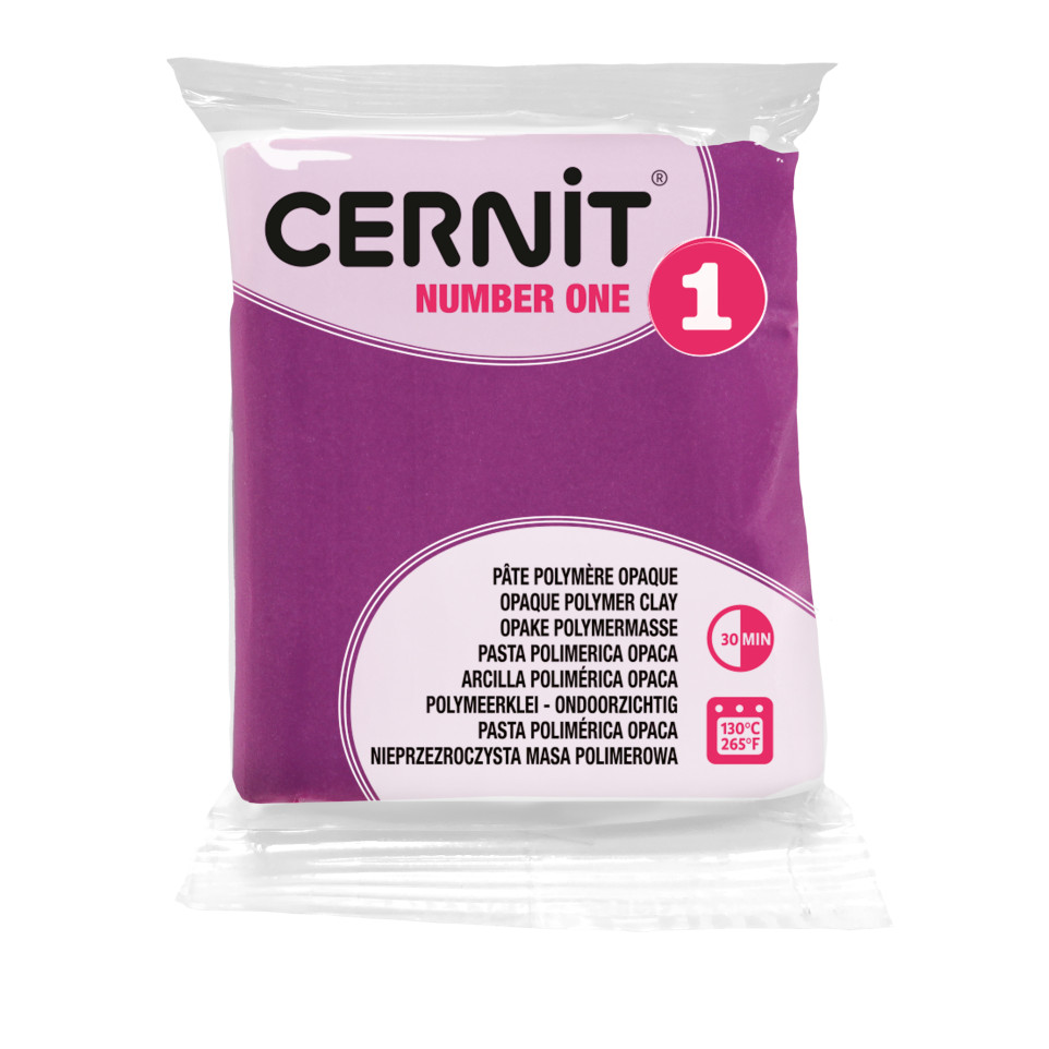 Cernit n°1 56g Paars NUMBER ONE : Bakklei (polymeer). Wordt volledig ondoorzichtig na het bakken. De kleuren veranderen niet. Het Number One assortiment is geschikt voor alle technieken. Het kan worden gebruikt om kleurverlopen te creëren of verschillende tinten strikt af te bakenen. BAKINSTRUCTIES : Bak de klei op een temperatuur tussen 110°C (230°F) en 130°C (266°F) in een traditionele oven gedurende maximum 30 minuten. Zorgt voor geen geurhinder. Gaat niet barsten. Niet geschikt voor microgolfoven. Na het bakken, is de klei hard maar je kan ze nog altijd bewerken (schuren, schilderen, enz...) EIGENSCHAPPEN : Droogt niet uit. Na het bakken krijgt de klei vaste vorm, maar blijft ze soepel. De klei is geurloos, aangenaam om mee te werken, en blijft onbeperkt kneedbaar. Ze laat geen sporen na op je handen of gereedschap. Alle kleuren kunnen onderling worden gemengd om zo de gewenste tint te verkrijgen. Vegan. TOEPASSINGEN : Ideaal voor het maken van sieraden, reproducties, miniaturen, figuren enz. Zorg voor propere handen en een proper werkblad als je de klei bewerkt. Kneed de klei om ze zachter te maken vooraleer je ze bewerkt. Je kan ze boetseren, gieten, bedrukken of ze gebruiken in combinatie met andere materialen zoals stenen, parels, veren, enz. Je kan additieven zoals glitters, alcoholinkt enz. binnenin de klei toevoegen alvorens ze te bakken. GEWICHT : 56g. PRODUCTIE : Alle Cernit bakkleien worden gemaakt in België, in de buurt van Luik.