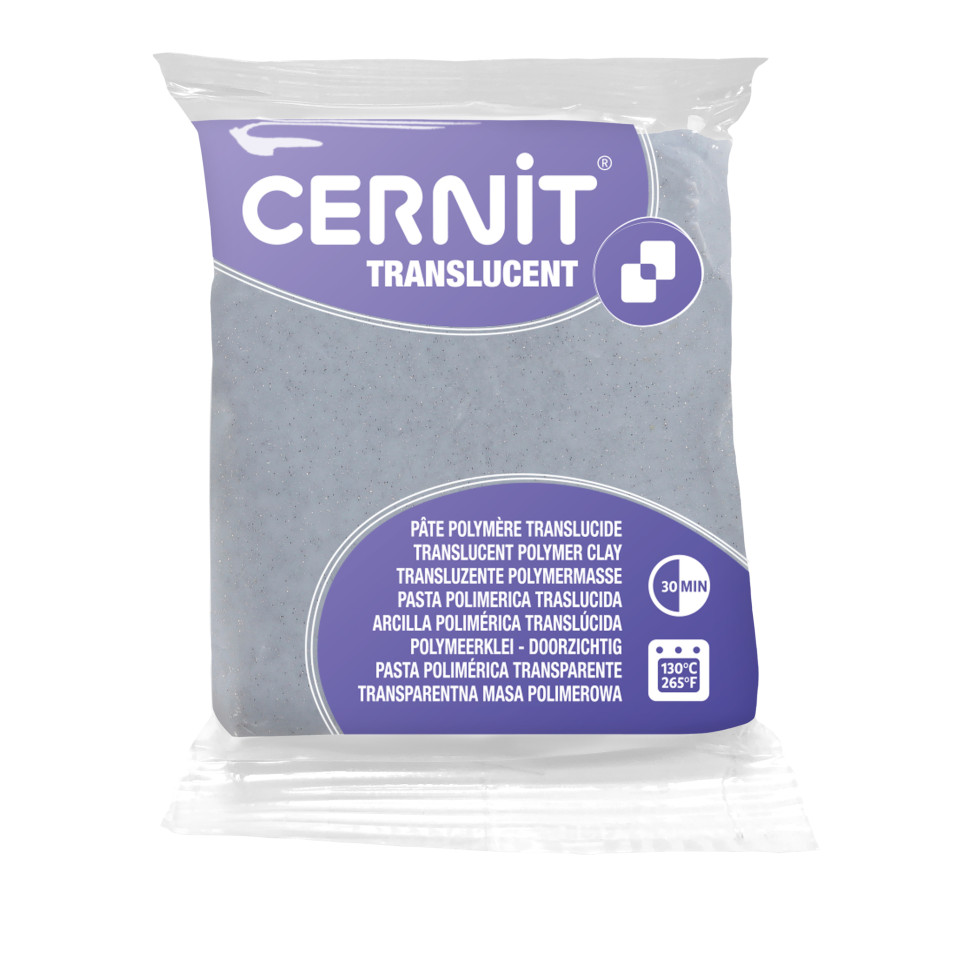 Cernit TRANSLUCENT 56g Glitter zilver TRANSLUCENT : Bakklei (polymeer). Wordt volledig doorschijnend na het bakken. Laat toe om objecten of voedsel levensecht na te maken. BAKINSTRUCTIES : Bak de klei op een temperatuur tussen 110°C (230°F) en 130°C (266°F) in een traditionele oven gedurende maximum 30 minuten. Zorgt voor geen geurhinder. Gaat niet barsten. Niet geschikt voor microgolfoven. Na het bakken, is de klei hard maar je kan ze nog altijd bewerken (schuren, schilderen, enz...) EIGENSCHAPPEN : Droogt niet uit. Na het bakken krijgt de klei vaste vorm, maar blijft ze soepel. De klei is geurloos, aangenaam om mee te werken, en blijft onbeperkt kneedbaar. Ze laat geen sporen na op je handen of gereedschap. Alle kleuren kunnen onderling worden gemengd om zo de gewenste tint te verkrijgen. Vegan. TOEPASSINGEN : Ideaal voor het maken van sieraden, reproducties, miniaturen, figuren enz. Zorg voor propere handen en een proper werkblad als je de klei bewerkt. Kneed de klei om ze zachter te maken vooraleer je ze bewerkt. Je kan ze boetseren, gieten, bedrukken of ze gebruiken in combinatie met andere materialen zoals stenen, parels, veren, enz. Je kan additieven zoals glitters, alcoholinkt enz. binnenin de klei toevoegen alvorens ze te bakken. GEWICHT : 56g. PRODUCTIE : Alle Cernit bakkleien worden gemaakt in België, in de buurt van Luik.