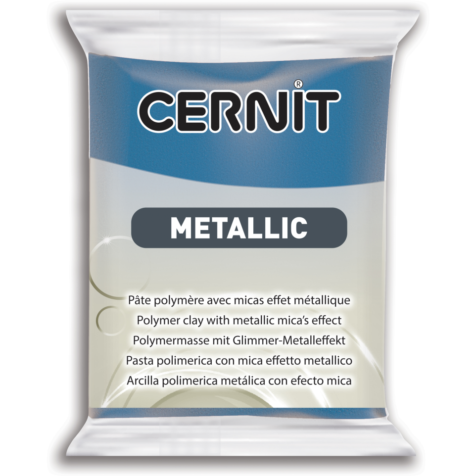 Cernit METALLIC 56g Blauw METALLIC : Bakklei (polymeer). Voor het verkrijgen van een hoogwaardig metaaleffect na het bakken. Bevat een grote hoeveelheid zeer fijne glitters (Mika genaamd). BAKINSTRUCTIES : Bak de klei op een temperatuur tussen 110°C (230°F) en 130°C (266°F) in een traditionele oven gedurende maximum 30 minuten. Zorgt voor geen geurhinder. Gaat niet barsten. Niet geschikt voor microgolfoven. Na het bakken, is de klei hard maar je kan ze nog altijd bewerken (schuren, schilderen, enz...) EIGENSCHAPPEN : Droogt niet uit. Na het bakken krijgt de klei vaste vorm, maar blijft ze soepel. De klei is geurloos, aangenaam om mee te werken, en blijft onbeperkt kneedbaar. Ze laat geen sporen na op je handen of gereedschap. Alle kleuren kunnen onderling worden gemengd om zo de gewenste tint te verkrijgen. Vegan. TOEPASSINGEN : Ideaal voor het maken van sieraden, reproducties, miniaturen, figuren enz. Zorg voor propere handen en een proper werkblad als je de klei bewerkt. Kneed de klei om ze zachter te maken vooraleer je ze bewerkt. Je kan ze boetseren, gieten, bedrukken of ze gebruiken in combinatie met andere materialen zoals stenen, parels, veren, enz. Je kan additieven zoals glitters, alcoholinkt enz. binnenin de klei toevoegen alvorens ze te bakken. GEWICHT : 56g. PRODUCTIE : Alle Cernit bakkleien worden gemaakt in België, in de buurt van Luik.